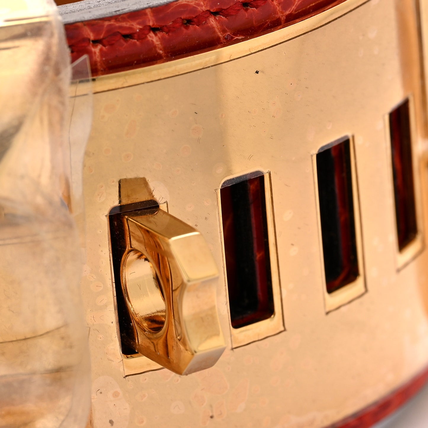 This is an authentic HERMES Shiny Alligator Collier de Chien CDC Bracelet size S in Greanium. This luxurious bracelet is crafted of polished alligator skin in red and features two gold plated fixtures, one with decorative studs and a dangling ring, and the other for sizing adjustment.Follow this item for alerts. Hermes is a registered trademark of Hermes. FASHIONPHILE is not affiliated with Hermes.
