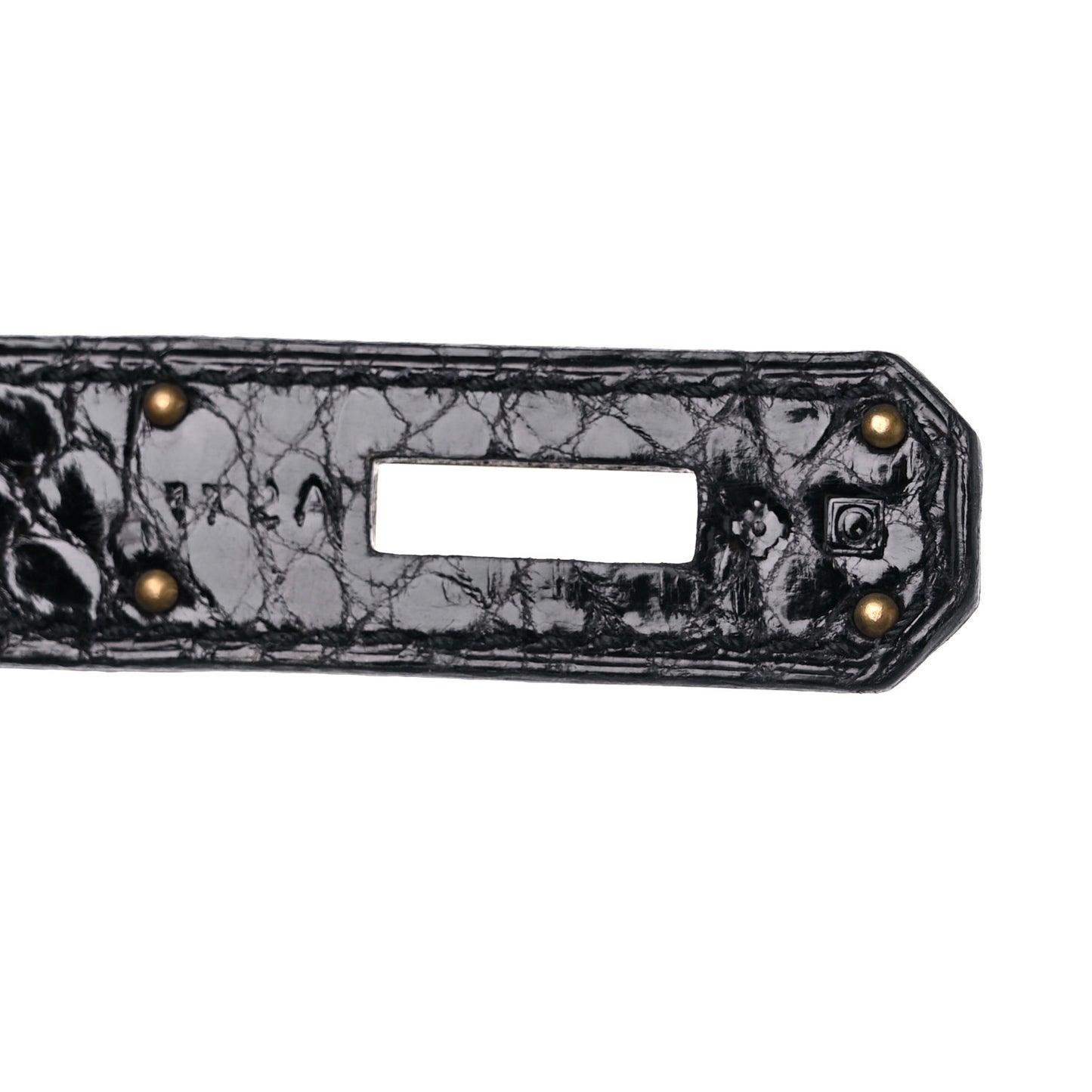 This is the authentic HERMES Shiny Porosus Crocodile Birkin 35 in Black. The creation of this bag was originally a collaboration and an inspiration between the French Hermes and the British actress Jane Birkin. This stunning handbag is featured here in luxurious black crocodile leather. Gold plated hardware is found at the closure straps, lock, and feet. The bag opens to an interior of chevre goatskin leather with zipper and patch pockets.Follow this item for alerts. Hermes is a registered trademark of Hermes. FASHIONPHILE is not affiliated with Hermes.