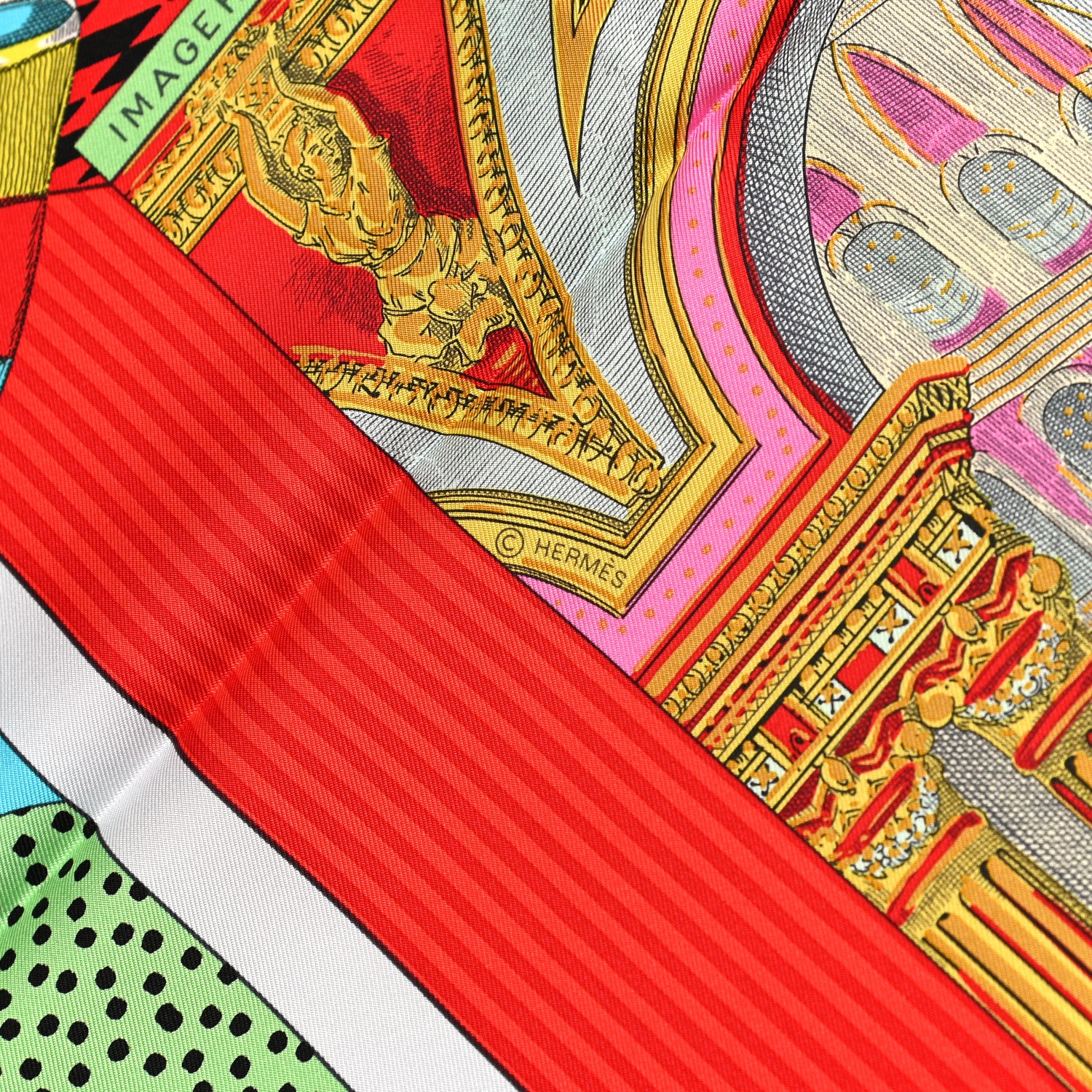 Hermes/ Accessories/ Scarves /Hermes Silk Grand Theatre Nouveau Scarf 90 Rouge Vert Multicolor
