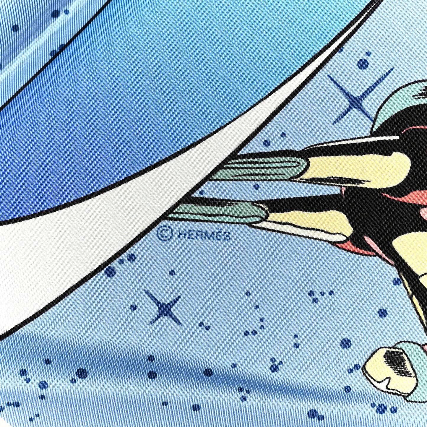 This is an authentic HERMES Silk Space Derby Scarf 90 in Bleu Ciel, Rose, Vert, and Amande. This stunning 100% silk scarf features an art scene of horses pulling their riders on a blue and multicolored background with different shapes and patterns.Follow this item for alerts. Hermes is a registered trademark of Hermes. FASHIONPHILE is not affiliated with Hermes.