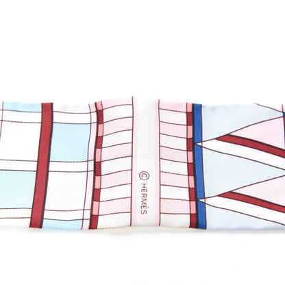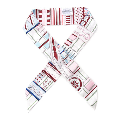 Hermes/ Accessories/ Scarves /Hermes Silk Voltes Et Pirouettes Twilly Rose Ciel Bordeaux
