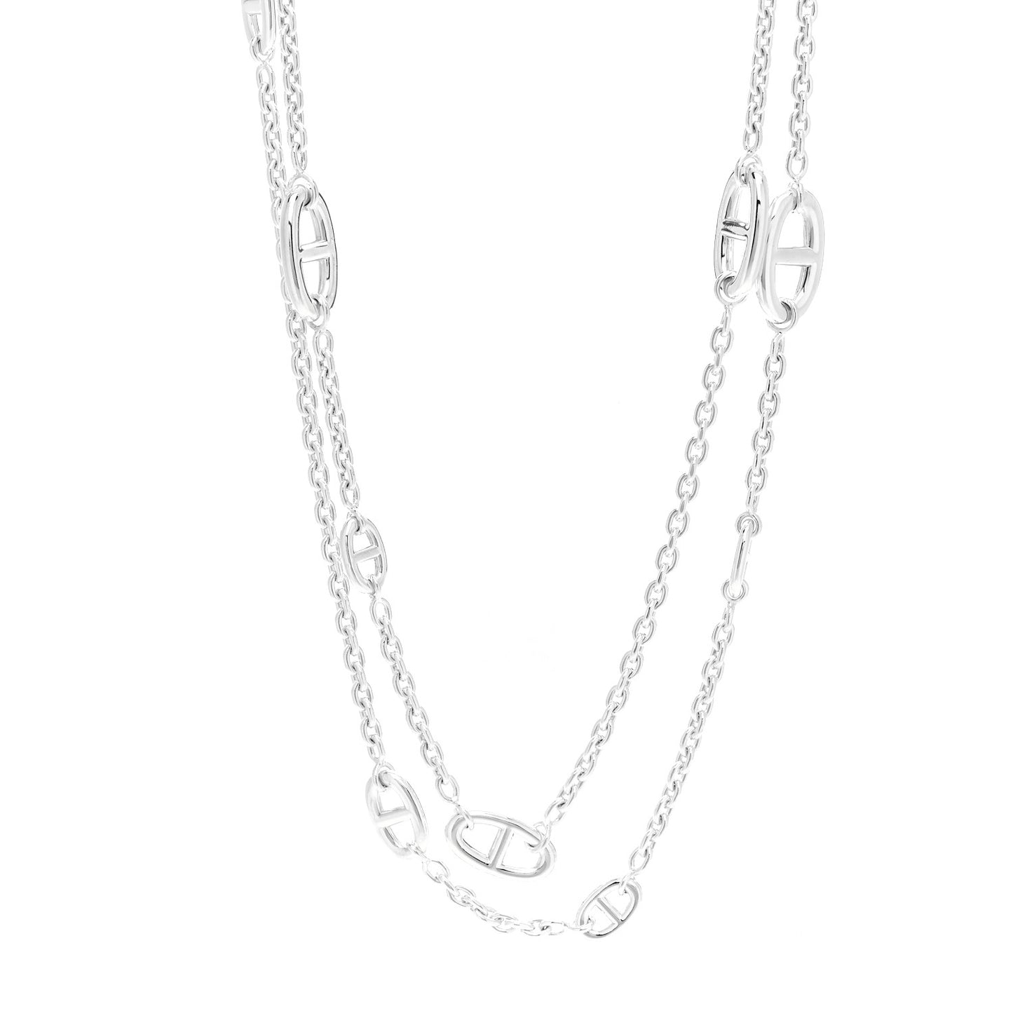 This is an authentic HERMES Sterling Silver Farandole Necklace 120. The necklace is crafted of sterling silver and features chaine d'ancre links in various sizes along the chain.Follow this item for alerts. Hermes is a registered trademark of Hermes. FASHIONPHILE is not affiliated with Hermes.