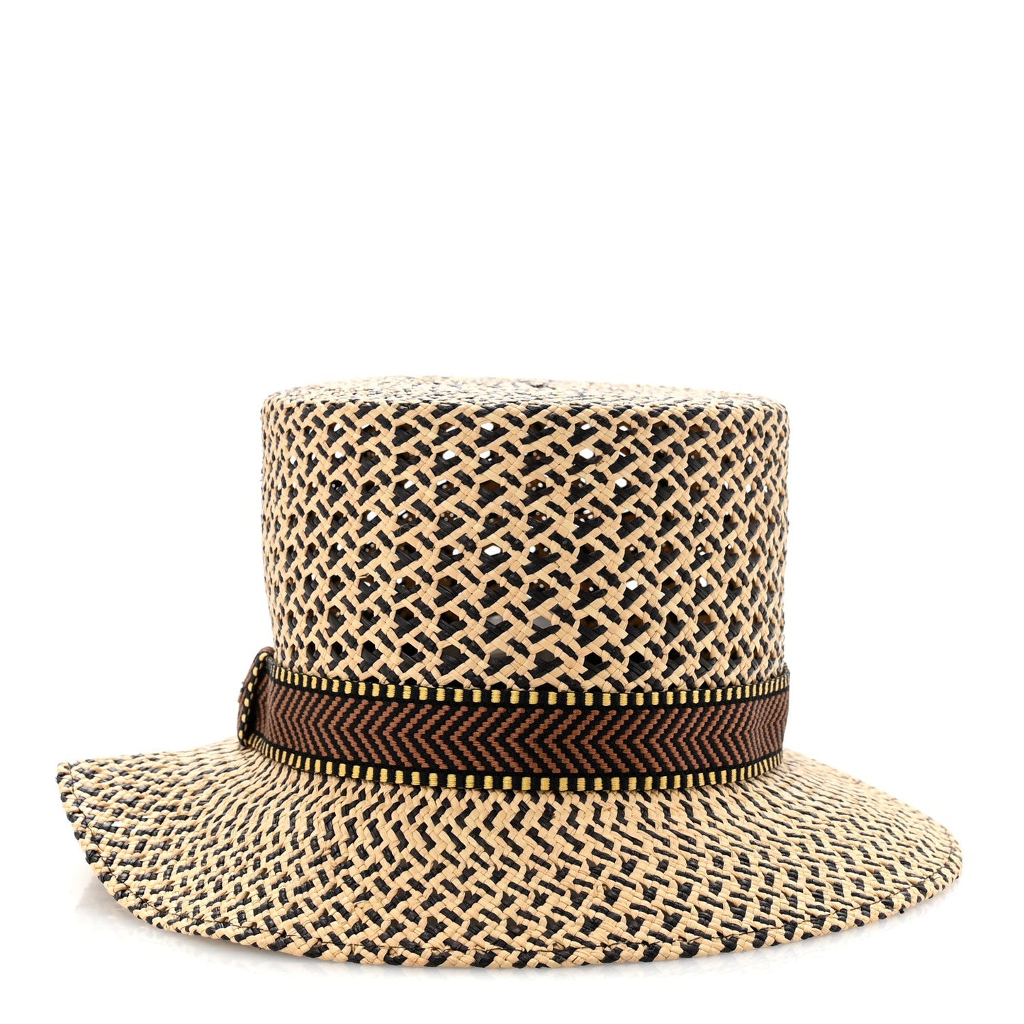 Hermes/ Accessories/ Hats /Hermes Straw Adele Panama Hat 58 Naturel Marron Jaune