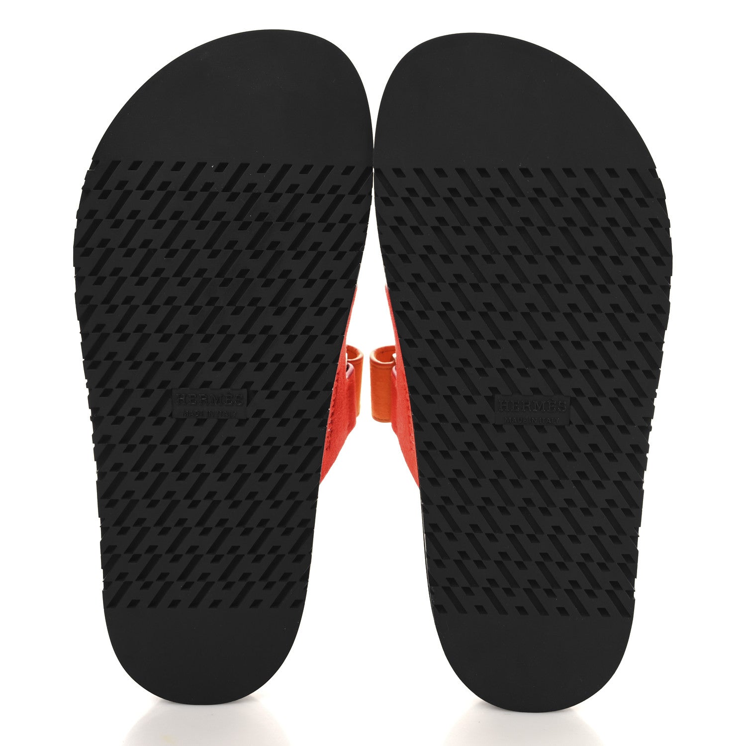 This is an authentic pair of HERMES Suede Goatskin Womens Chypre Sandals size 37.5 in Rouge Ecarlate Sunset. These stylish sandals are crafted of suede leather in red and orange. They feature a toe strap across-over large Hermes H and an adjustable strap.Follow this item for alerts. Hermes is a registered trademark of Hermes. FASHIONPHILE is not affiliated with Hermes.