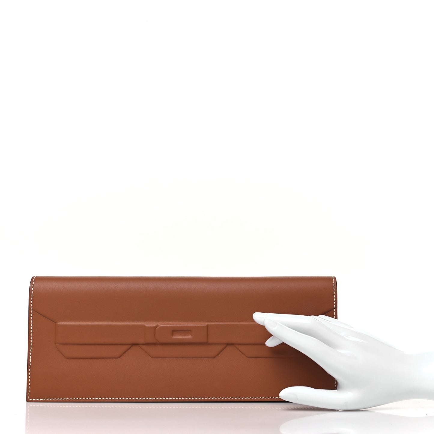 This is an authentic HERMES Swift Shadow Clutch 29 in Gold. This stylish clutch is crafted of swift leather in brown. The flap features an embossed, faux Birkin closure and opens to a matching leather interior with a patch pocket.Follow this item for alerts. Hermes is a registered trademark of Hermes. FASHIONPHILE is not affiliated with Hermes.