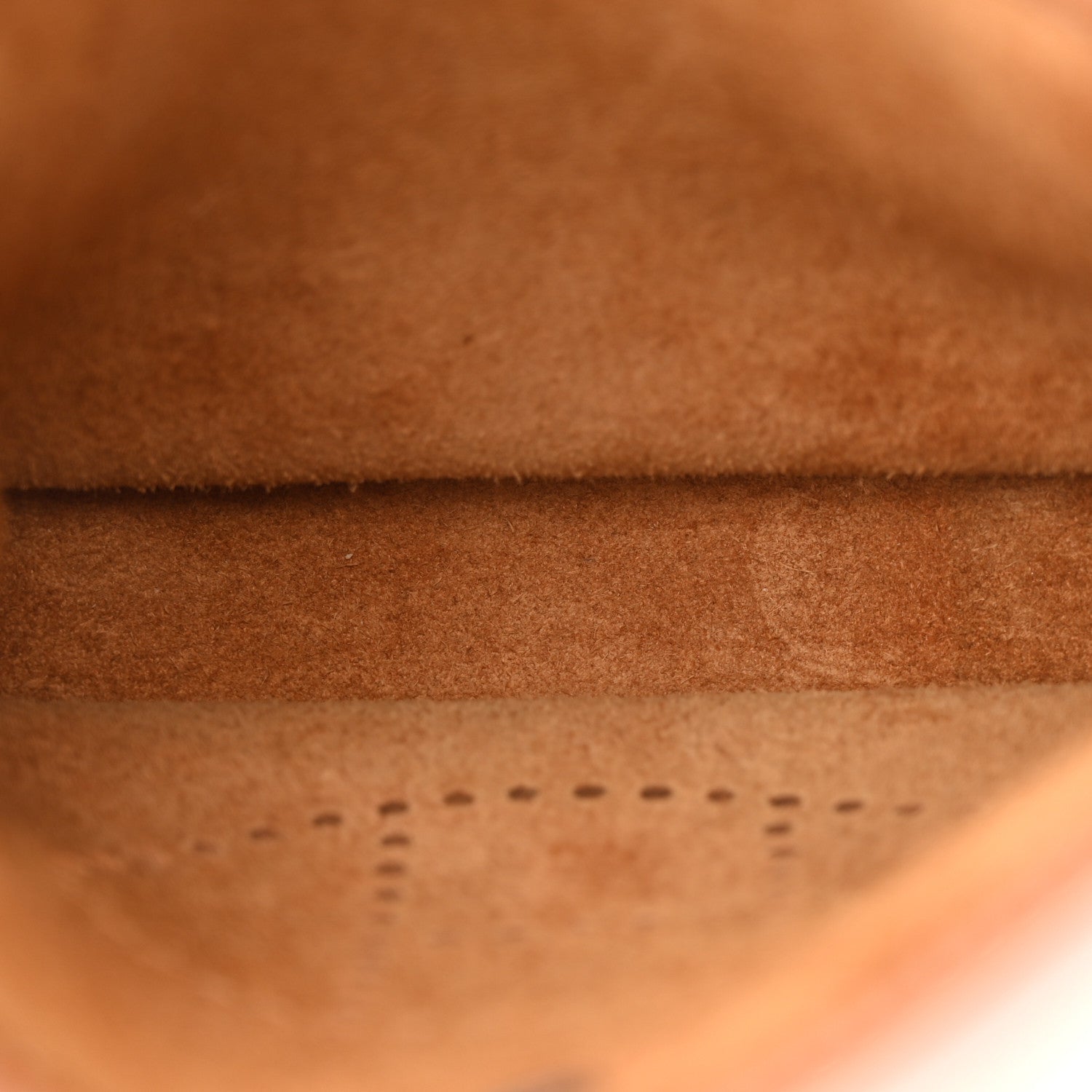 This is an authentic HERMES Taurillon Clemence Amazone Evelyne TPM in Gold and Cuivre. This petite messenger bag is crafted of rich taurillon clemence calfskin leather in golden brown and features a perforated Hermes H oval logo on one side. The bag has a golden brown canvas shoulder strap with polished silver plated hardware. The top of the bag opens with a crossover strap to a golden brown suede interior.Follow this item for alerts. Hermes is a registered trademark of Hermes. FASHIONPHILE is not affiliated with Hermes.
