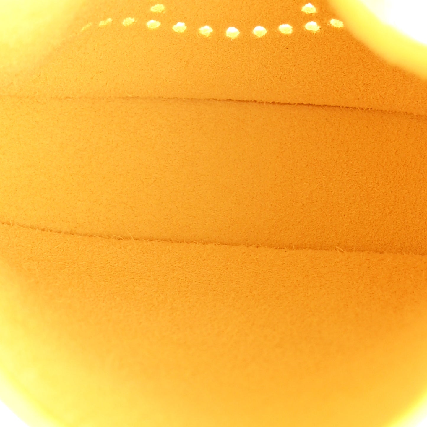 This is an authentic HERMES Taurillon Clemence Evelyne TPM in Limoncello. This stylish small messenger bag is crafted of textured Taurillon Clemence calfskin leather in yellow. It features a perforated Hermes H oval, a canvas crossbody strap, and palladium hardware. The top of the bag opens with a crossover strap to a matching suede interior.Follow this item for alerts. Hermes is a registered trademark of Hermes. FASHIONPHILE is not affiliated with Hermes.