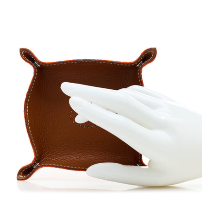 Hermes/ Accessories/ Household Items /Hermes Taurillon Clemence Felt Bridge Mises et Relances Change Tray Gold Orange