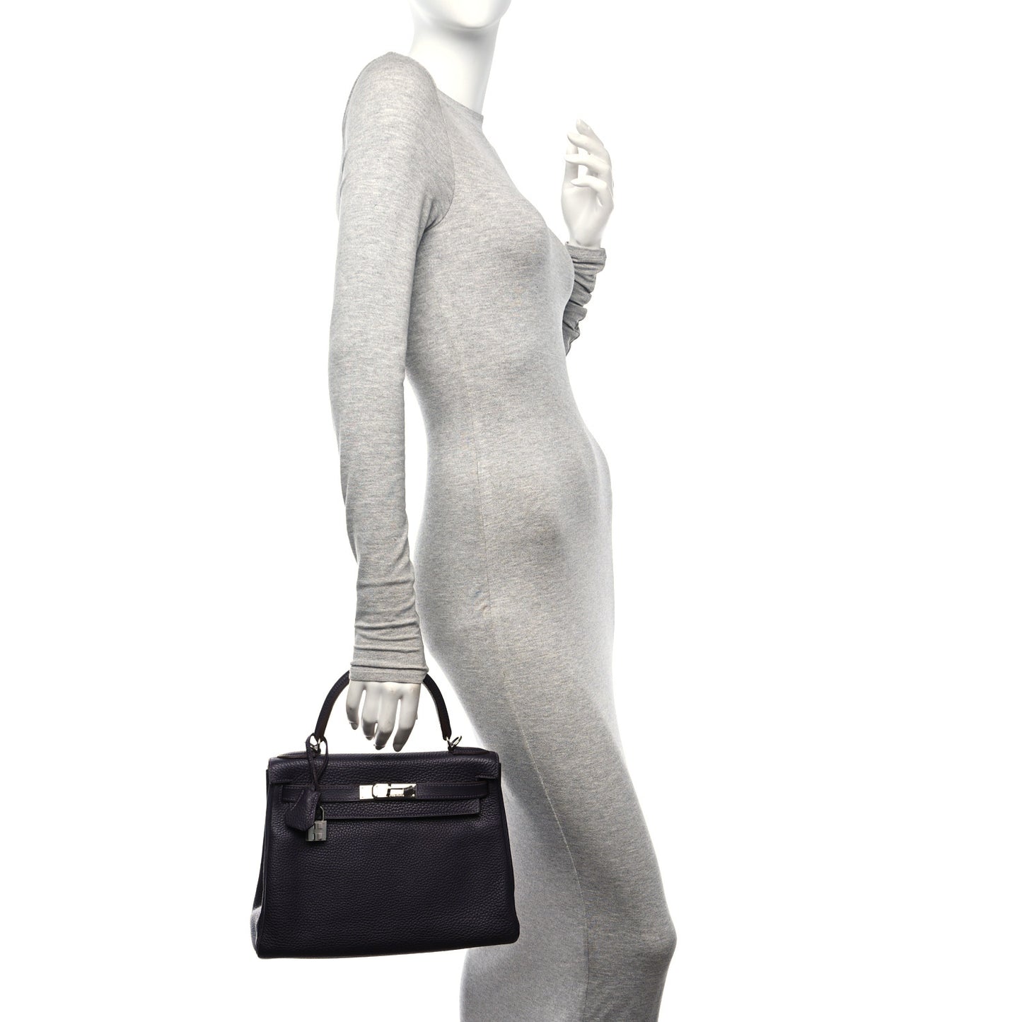 This is an authentic HERMES Taurillon Clemence Kelly Retourne 28 in Raisin. This handbag is crafted of textured calfskin leather in purple and features a reinforced leather top handle, an optional matching shoulder strap, and polished palladium hardware, including a Kelly turn lock on the front flap. The bag opens to a leather interior with zipper and patch pockets.Follow this item for alerts. Hermes is a registered trademark of Hermes. FASHIONPHILE is not affiliated with Hermes.