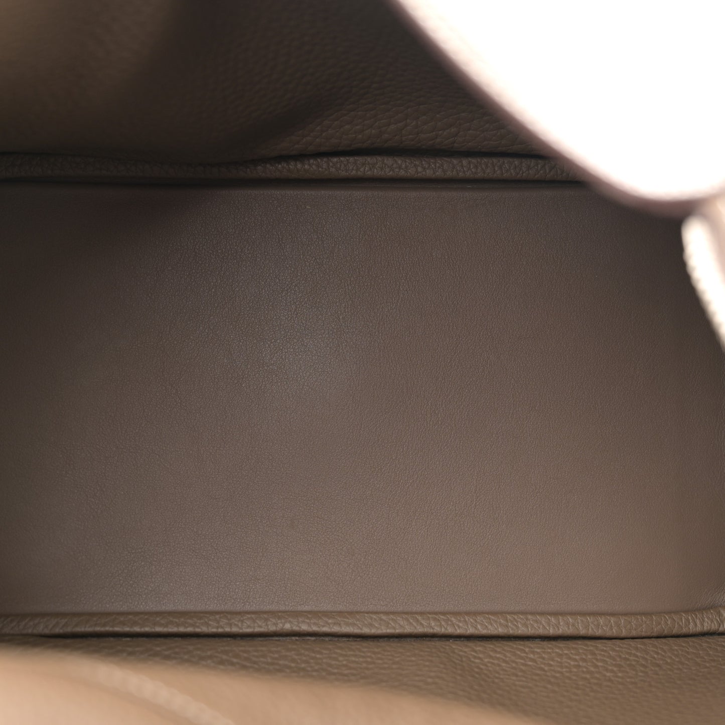This is an authentic HERMES Taurillon Clemence Lindy 30 in Etoupe. This stylish shoulder bag is crafted of fine-grained calfskin leather in taupe. The bag features a unique looping shoulder strap and a cross over flap secured with two palladium plated and leather zippers and turn lock. This opens to a matching leather interior with side patch pockets.Follow this item for alerts. Hermes is a registered trademark of Hermes. FASHIONPHILE is not affiliated with Hermes.