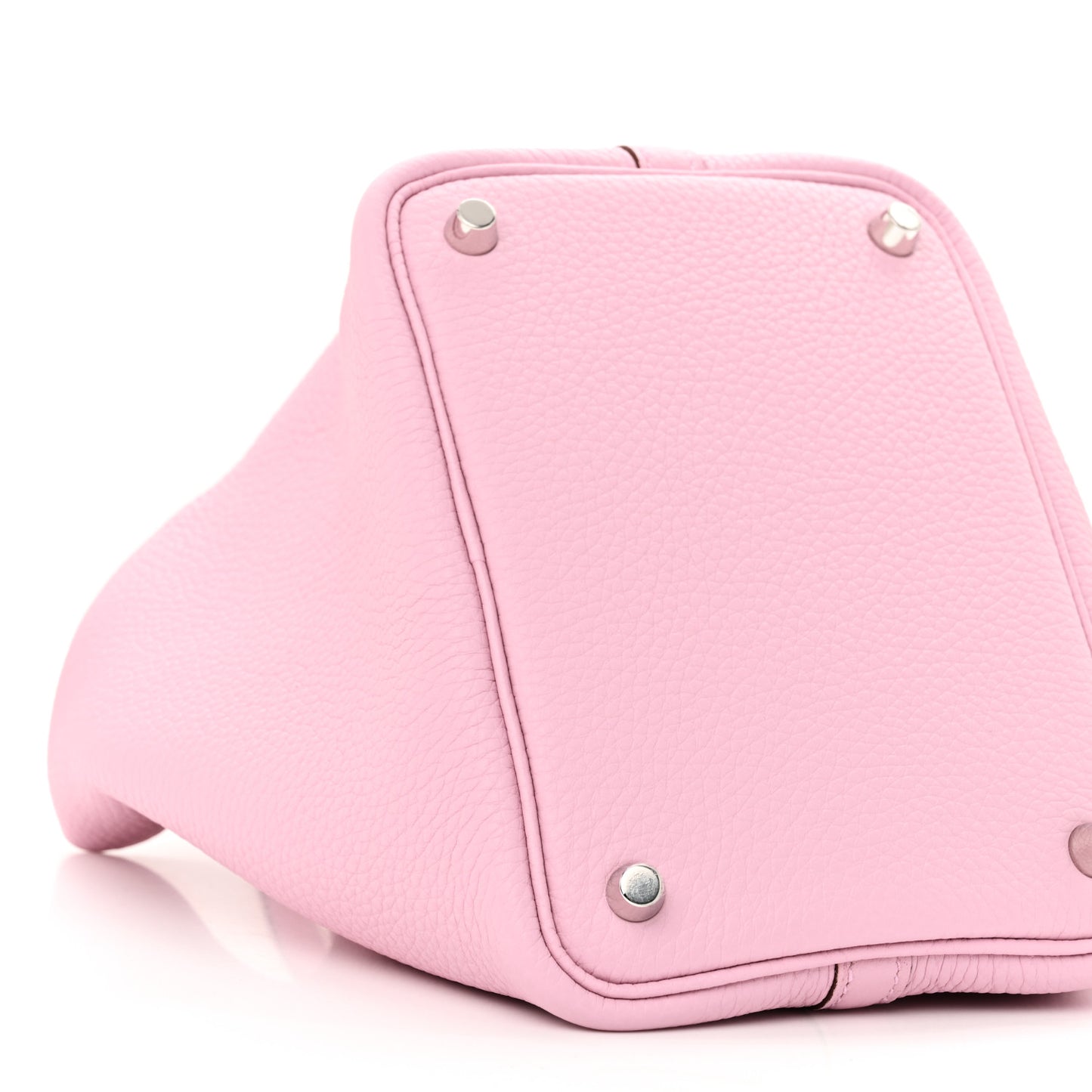 This is an authentic HERMES Taurillon Clemence Picotin Lock 18 PM in Mauve Sylvestre. This chic handbag is crafted of textured clemence calfskin leather in pink. This bucket style bag features a unique one piece reinforced design with leather top handles and a closure strap with polished palladium plated hardware. This opens to a pink suede interior.Follow this item for alerts. Hermes is a registered trademark of Hermes. FASHIONPHILE is not affiliated with Hermes.