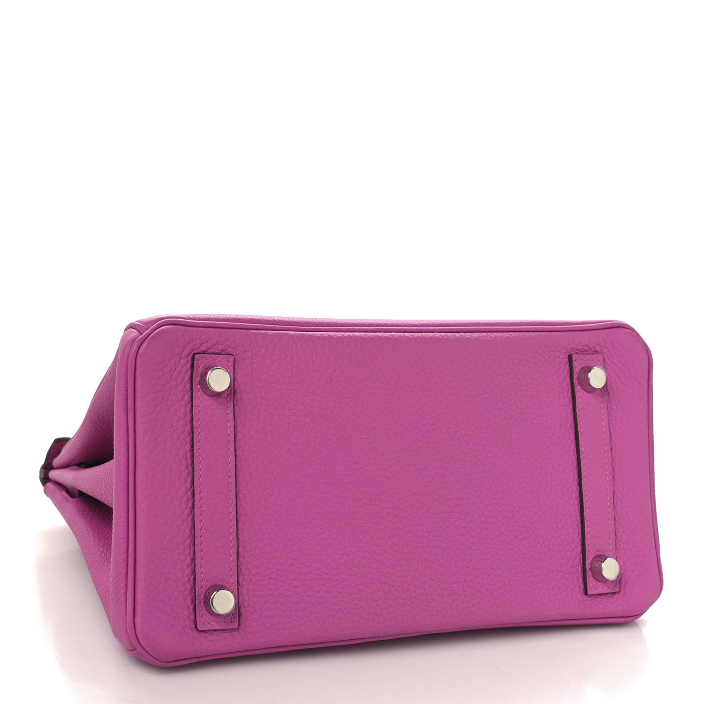 This is an authentic HERMES Togo Birkin 25 in Magnolia. This stunning Birkin handbag is crafted of luxurious togo leather in bright pink. The luxurious handbag features looping leather top handles, a cross over flap and a strap closure and palladium hardware links. This opens to a matching chevre leather interior in pink with zipper and patch pockets.Follow this item for alerts. Hermes is a registered trademark of Hermes. FASHIONPHILE is not affiliated with Hermes.
