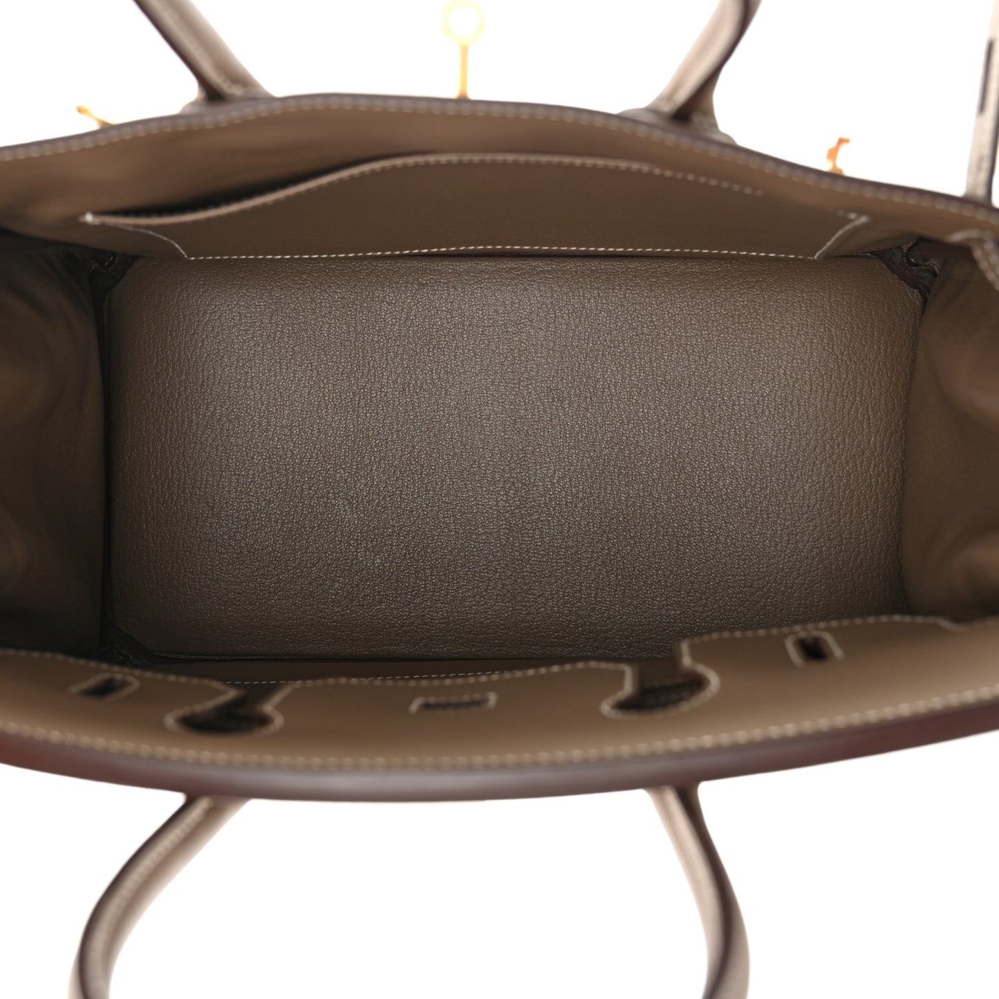 This is an authentic HERMES Togo Birkin 30 in Etoupe. This iconic handbag is finely crafted of grained calfskin leather in taupe. The bag features rolled leather top handles, a leather belt, and polished rose gold-plated hardware, including a turn lock, a padlock, and a hanging clochette with keys. The front flap opens to a matching goatskin leather interior with a zipper and patch pockets.Follow this item for alerts. Hermes is a registered trademark of Hermes. FASHIONPHILE is not affiliated with Hermes.