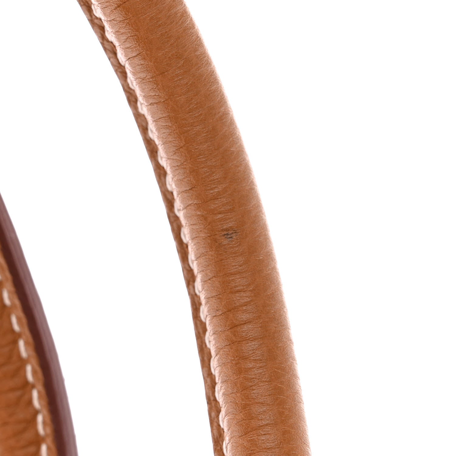 This is an authentic HERMES Togo Birkin 35 in Gold. This sophisticated handbag is finely crafted of grained togo leather in a classic camel brown with white contrast stitching. This iconic handbag features rolled leather top handles, a front flap with strap closure, and polished palladium hardware. The top flap opens to a matching brown chèvre leather interior with zipper and patch pockets.Follow this item for alerts. Hermes is a registered trademark of Hermes. FASHIONPHILE is not affiliated with Hermes.