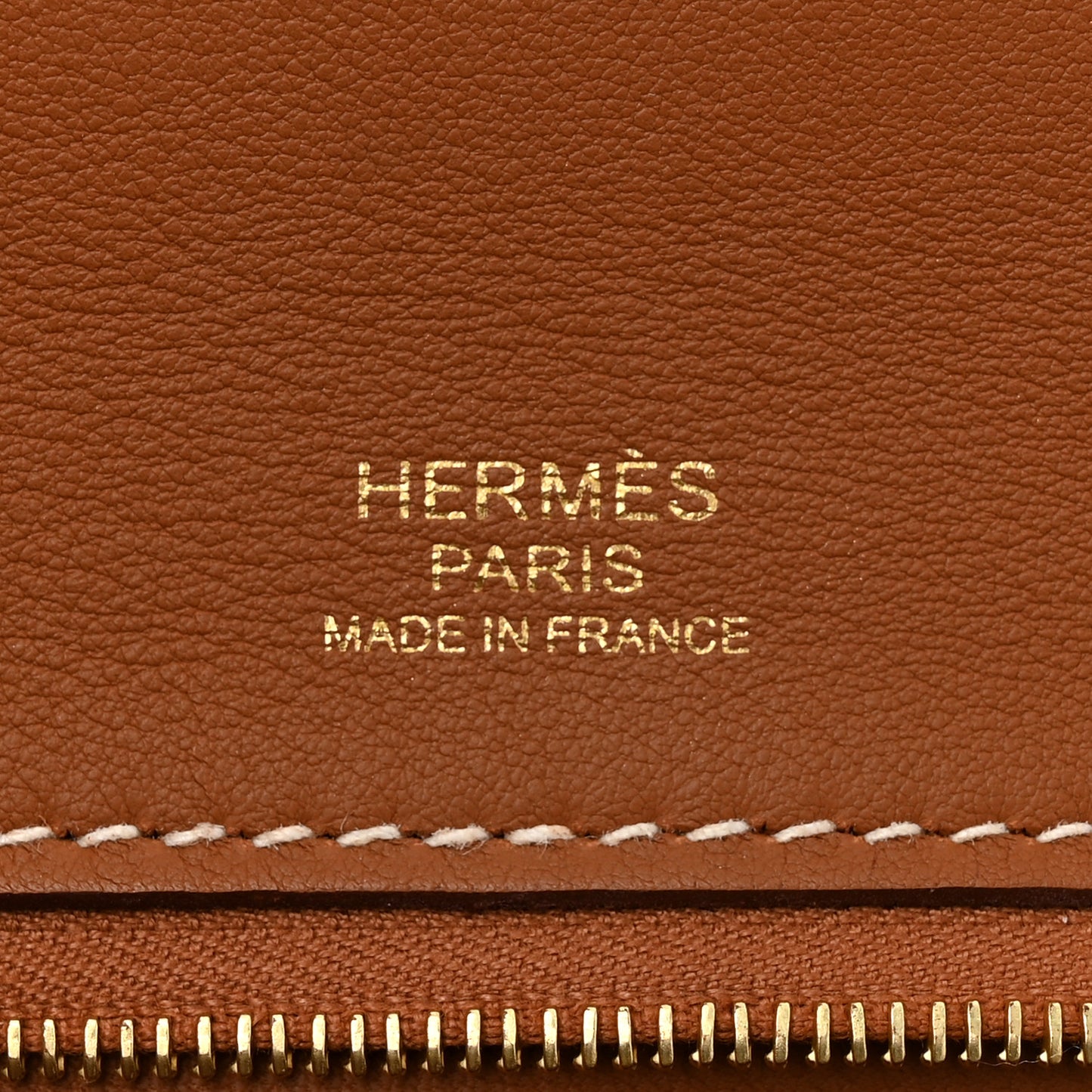 This is an authentic HERMES Togo Swift 24/24 29 in Gold. This handbag is crafted of richly textured calfskin leather in brown. The bag features a reinforced leather top handle, an optional leather shoulder strap, and gold plated hardware. The flap opens to a leather interior with a zipper pocket.Follow this item for alerts. Hermes is a registered trademark of Hermes. FASHIONPHILE is not affiliated with Hermes.