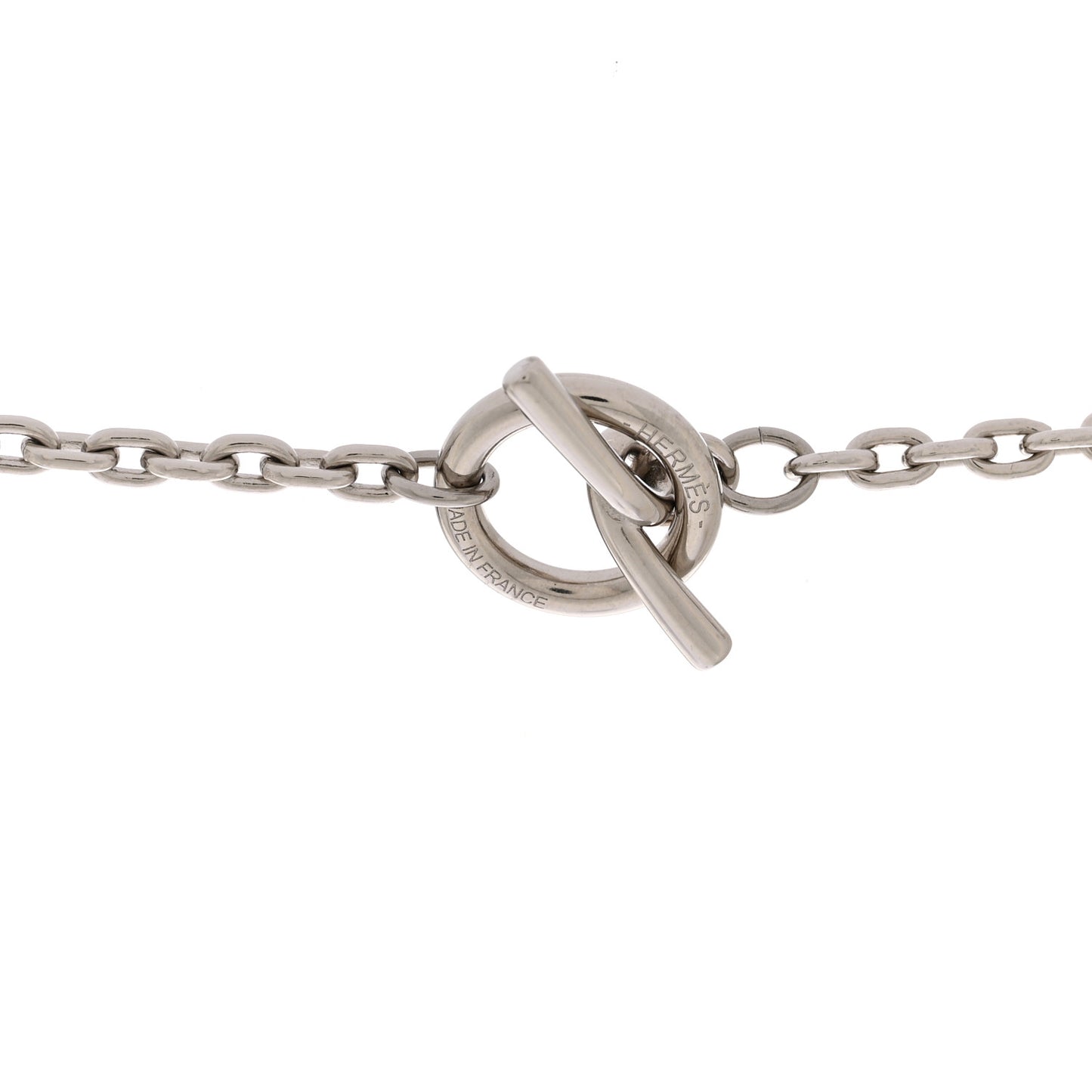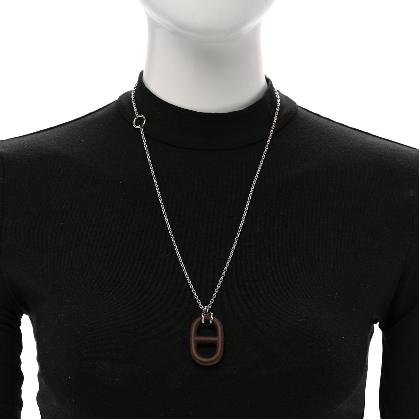 This is an authentic HERMES Vulcanium Chaine d'Ancre Necklace Silver and Brun. The necklace features a vulcanium Chaine d'Ancre motif with palladium plated hardware, which hangs on a silver chain.Follow this item for alerts. Hermes is a registered trademark of Hermes. FASHIONPHILE is not affiliated with Hermes.