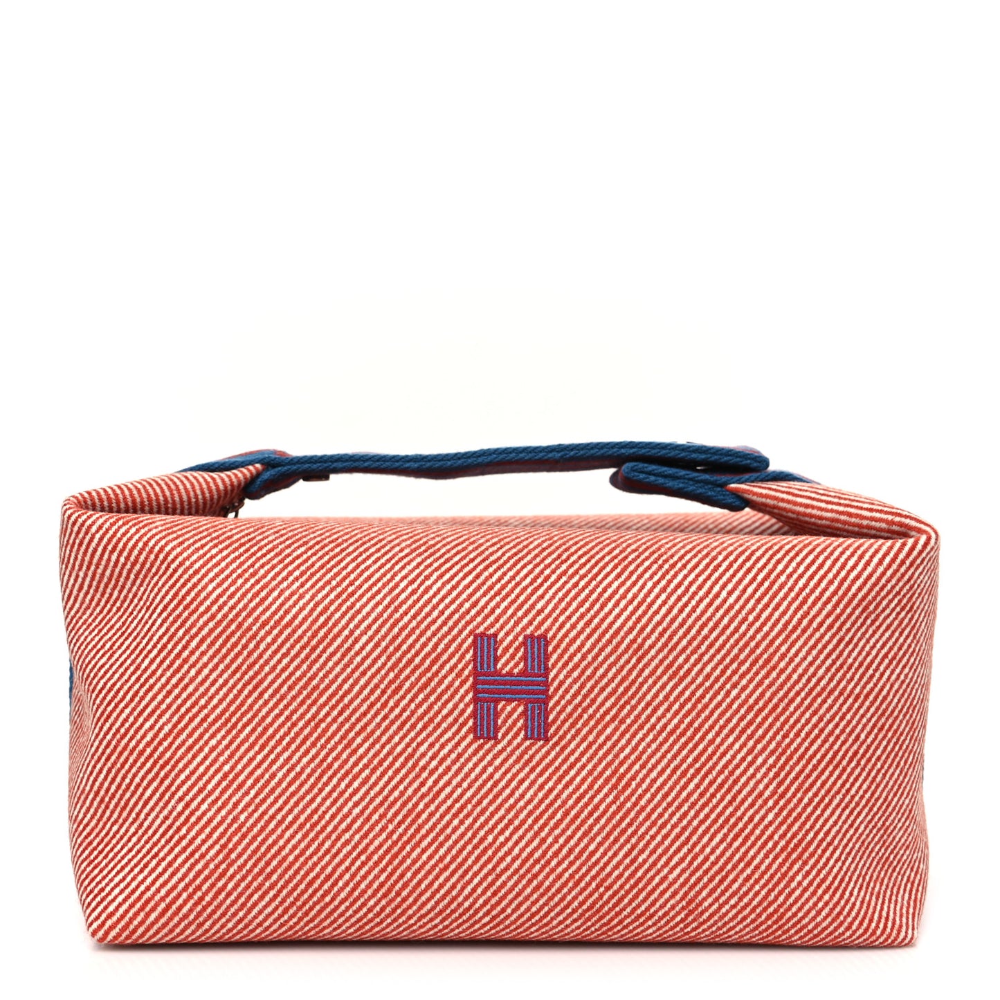 This is an authentic HERMES Wool Large Bride-A-Brac H Natte Pouch in Tomette. The terra cotta and white striped wool pouch features a red and blue checkered top handle with snap closure that extends in a decorative stripe around the bag. The top zipper opens to a beige herringbone canvas interior with patch pockets.Follow this item for alerts. Hermes is a registered trademark of Hermes. FASHIONPHILE is not affiliated with Hermes.