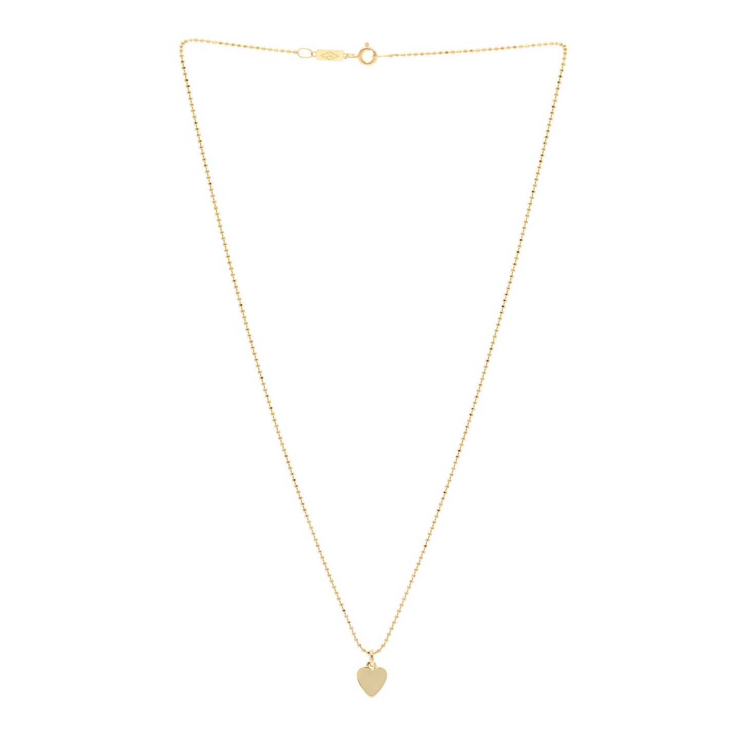 18K Yellow Gold Mini Heart Charm Pendant Beaded Necklace