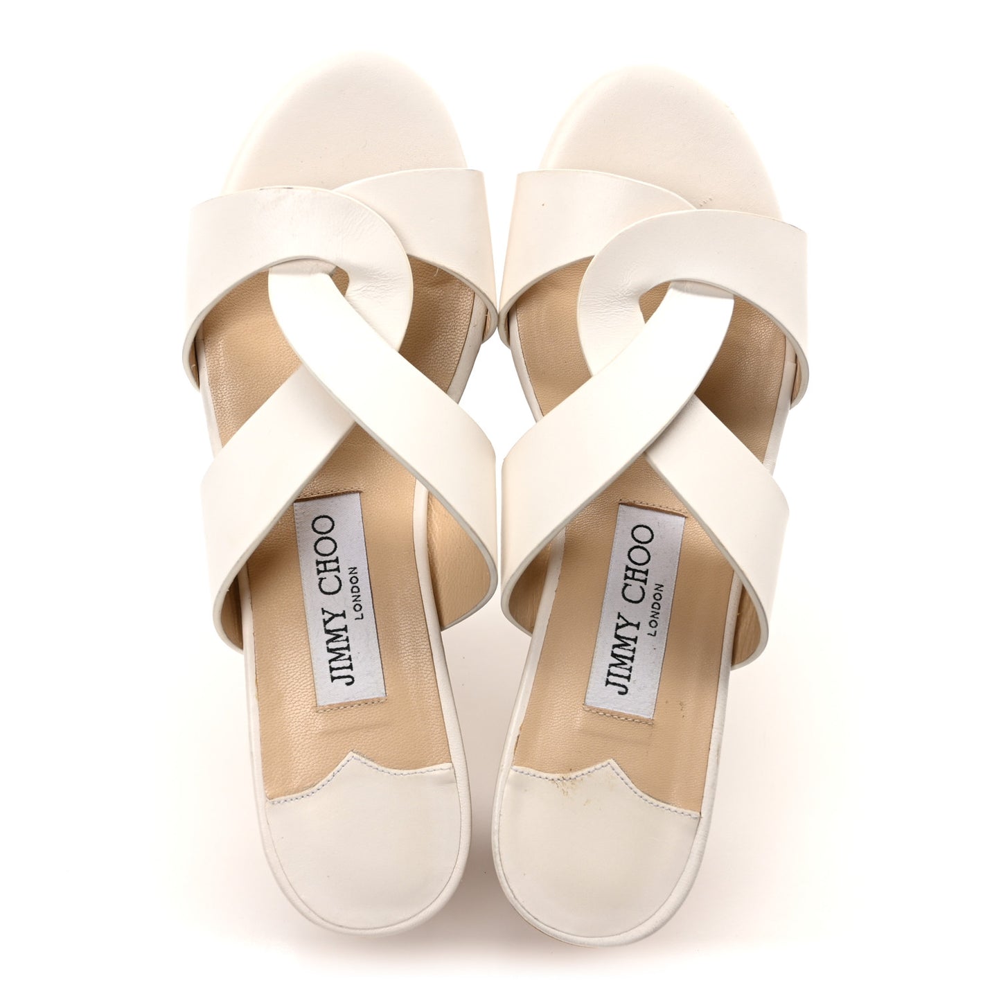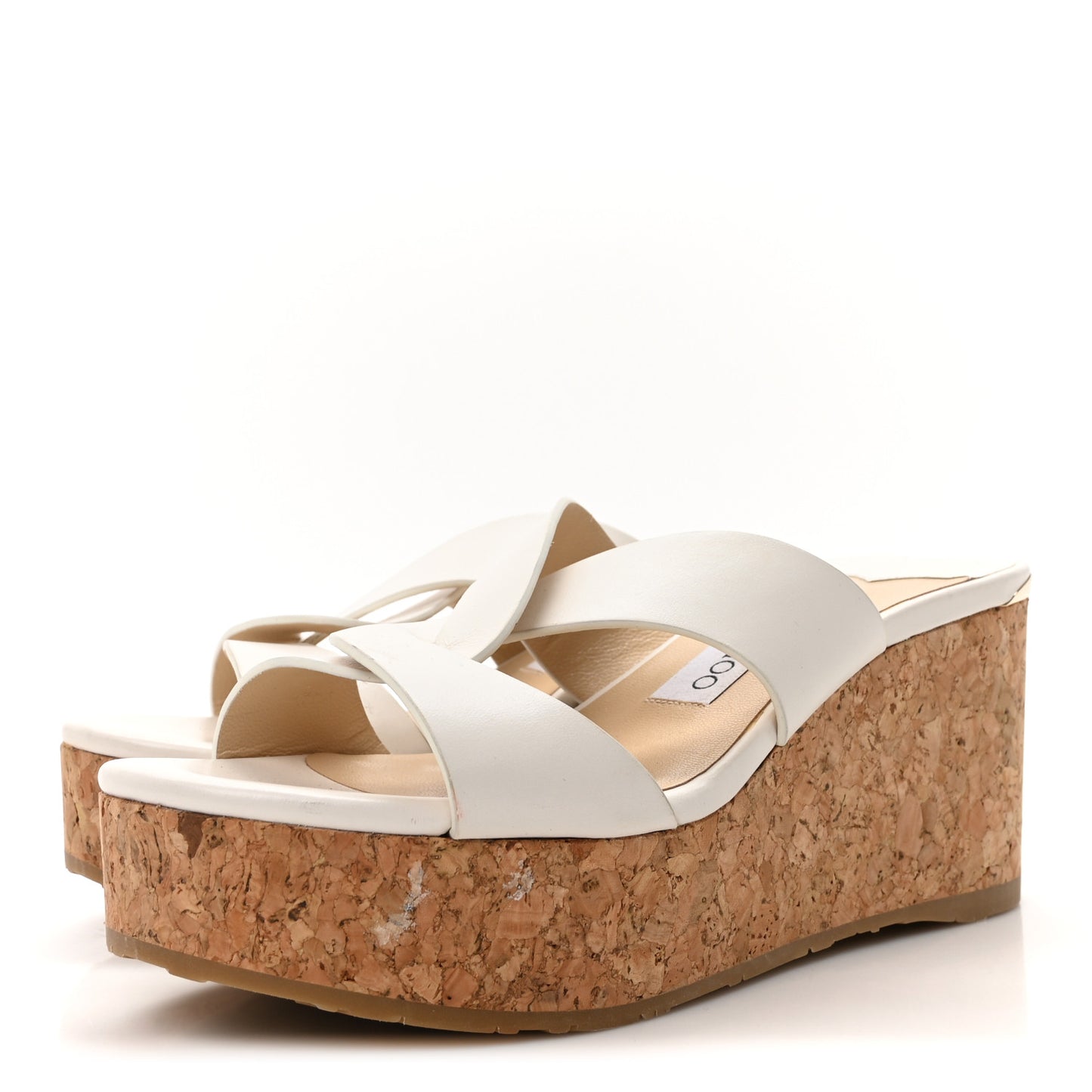 Jimmy Choo/ Accessories/ Shoes /Jimmy Choo Calfskin Cork Duclet Wedge 90 Sandals 36 White Cuoio