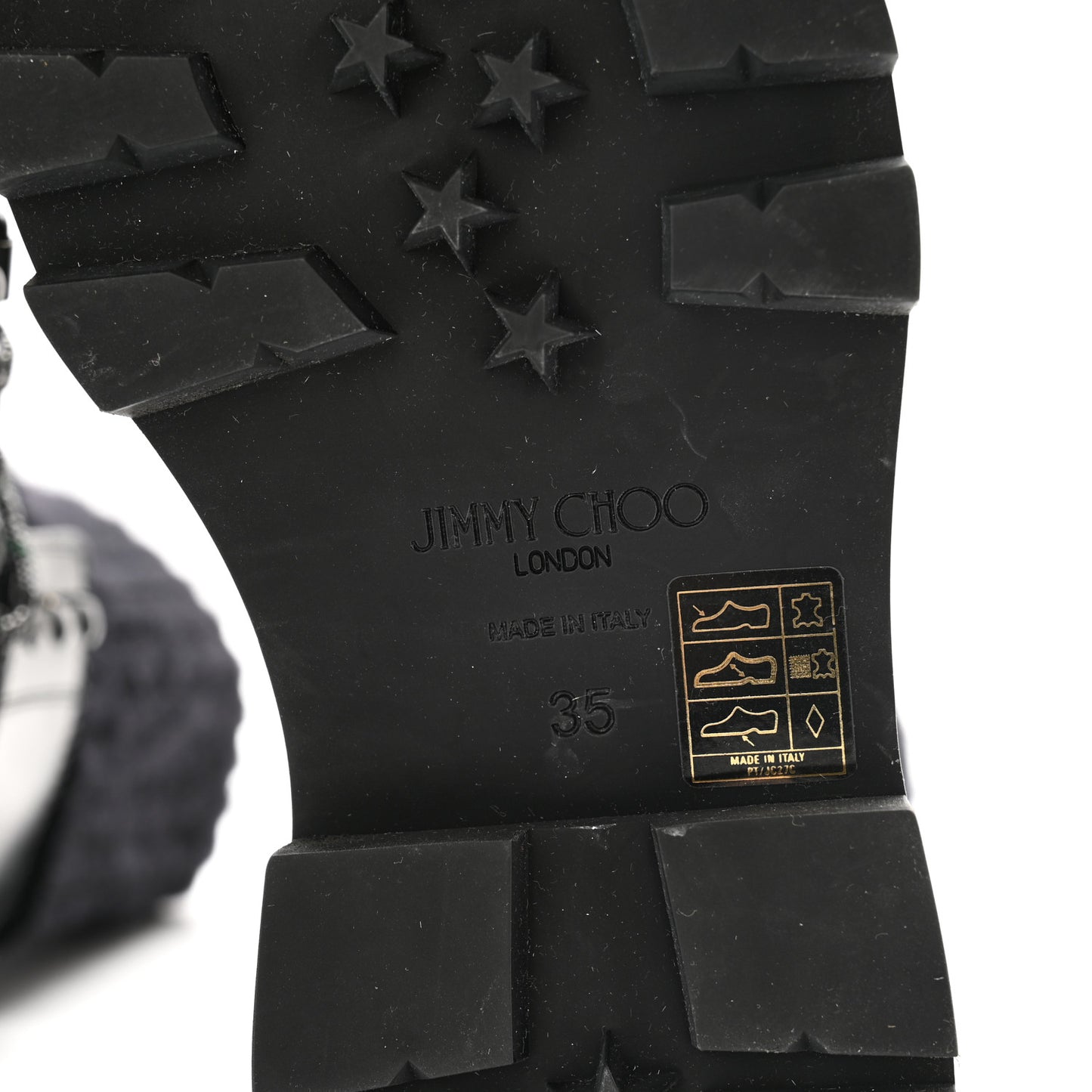 This is an authentic pair of JIMMY CHOO Calfskin Knit Wool Chike Ankle Boots 35 Black. These boots are crafted of black leather and feature foam rubber soles with a wool knit shaft.Follow this item for alerts. Jimmy Choo is a registered trademark of Jimmy Choo. FASHIONPHILE is not affiliated with Jimmy Choo.