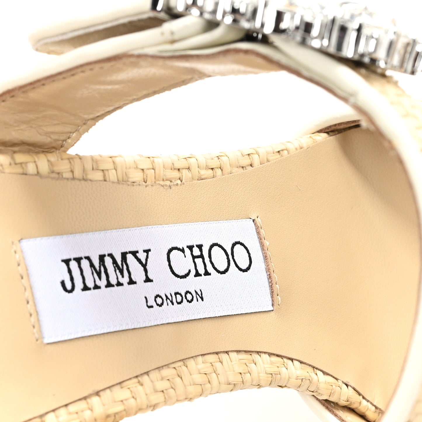 This is an authentic pair of JIMMY CHOO Raffia Crystal Dyana 85 Mule Pumps size 38.5 in Natural and Milk. These stylish pumps are crafted of woven raffia fabric. They feature crystal buckles on the ankle straps and 4-inch heels.Follow this item for alerts. Jimmy Choo is a registered trademark of Jimmy Choo. FASHIONPHILE is not affiliated with Jimmy Choo.
