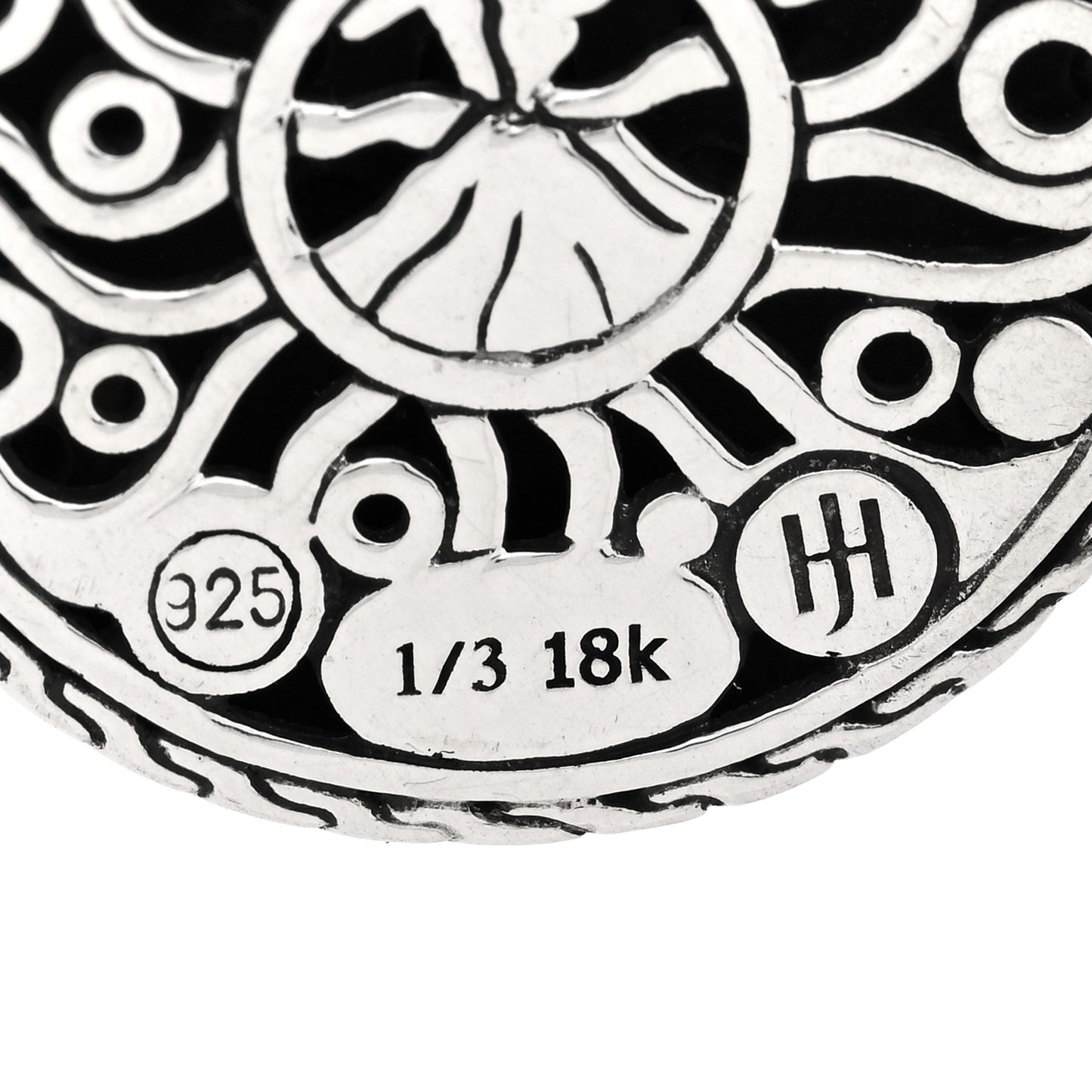 This is an authentic JJOHN HARDY Sterling Silver 18K Yellow Gold Dot Enhancer Pendant. The pendant is crafted of a sterling silver and 1/3 bonded 18 karat yellow gold, and features a round disc motif pendant adorned with yellow gold dots.Follow this item for alerts. John Hardy is a registered trademark of John Hardy. FASHIONPHILE is not affiliated with John Hardy.