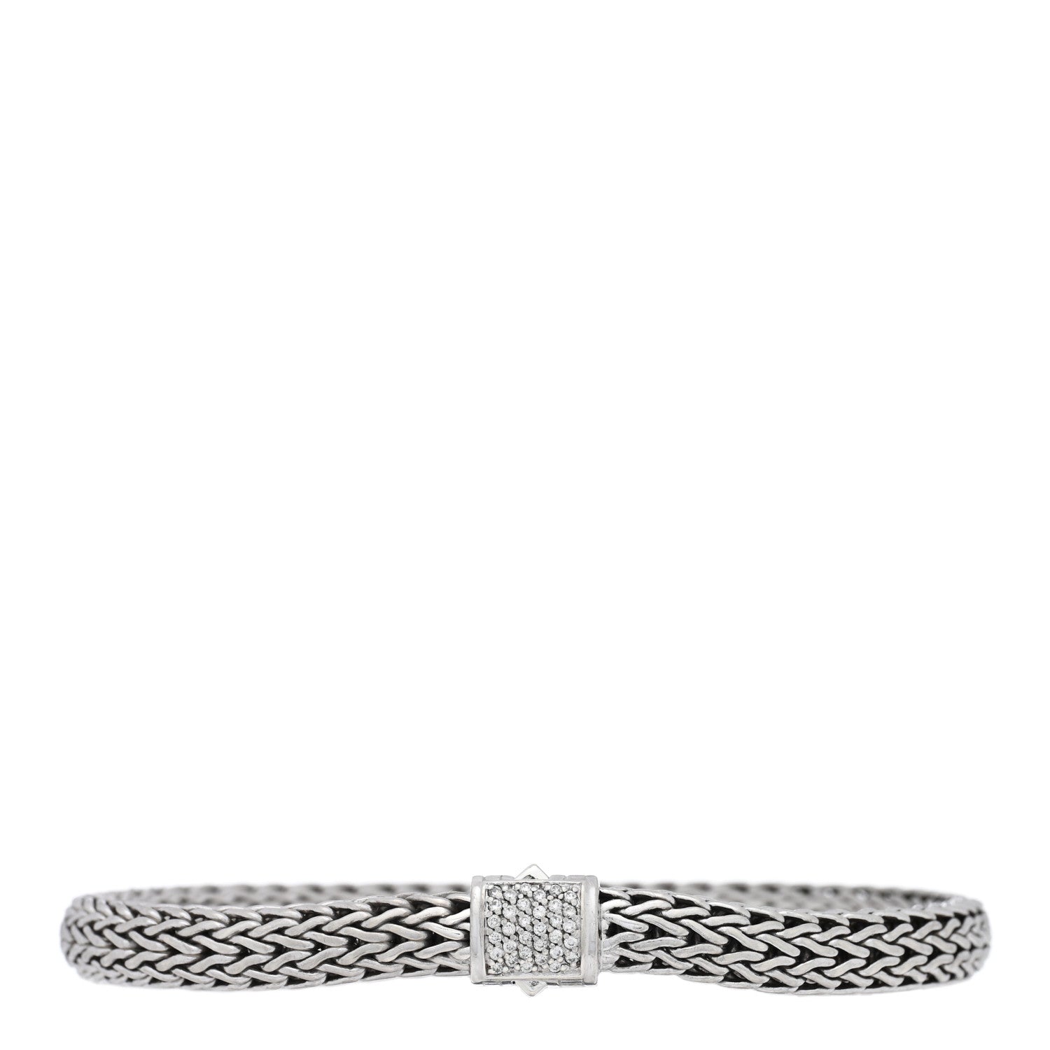 This is an authentic JOHN HARDY Sterling Silver Diamond 6.5mm Classic Chain Bracelet. The bracelet is crafted of sterling silver and features the classic hand-woven chain with a slide clasp set with diamonds, approximately .17 total carat weight.Follow this item for alerts. John Hardy is a registered trademark of John Hardy. FASHIONPHILE is not affiliated with John Hardy.