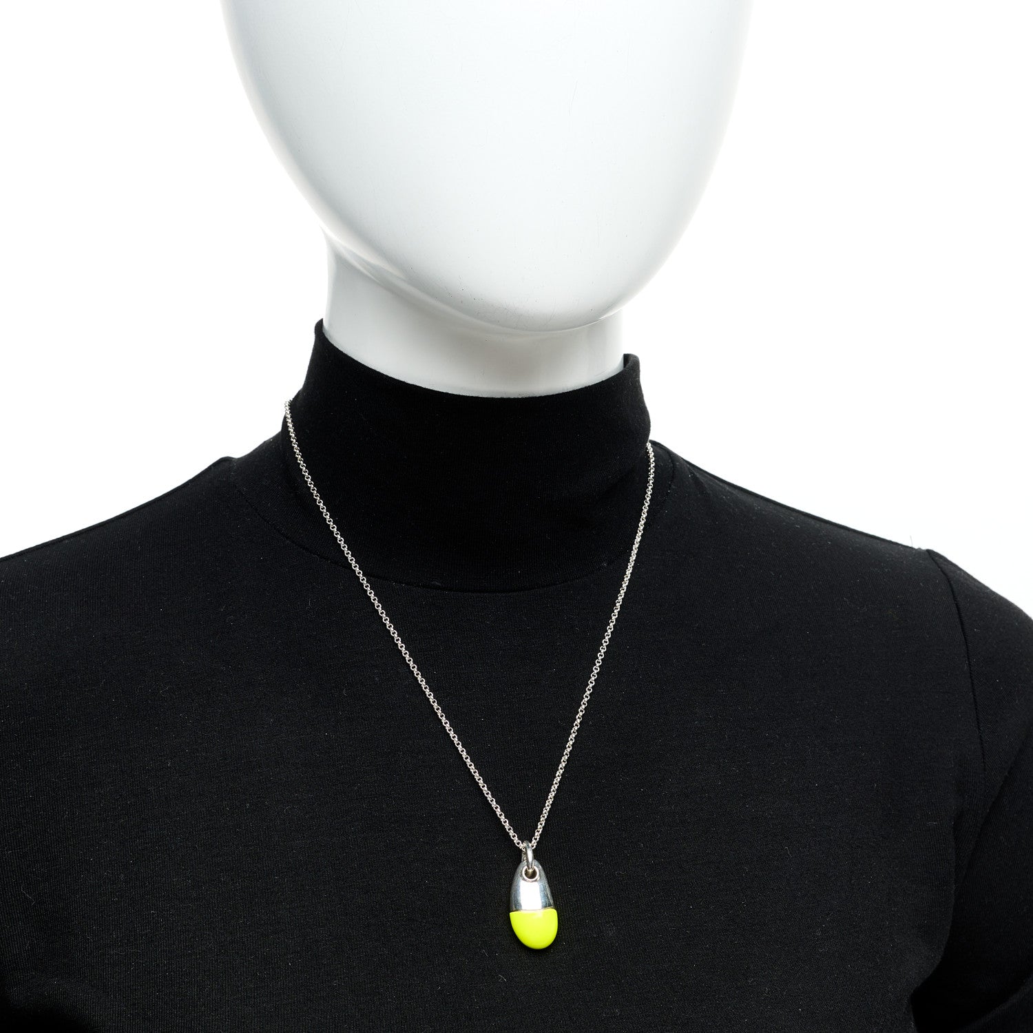 This is an authentic JOHN HARDY Sterling Silver Enamel Diamond Pebble Pendant Necklace. The necklace is crafted of sterling silver and features a pebble motif pendant accented with a lime green-lemon yellow enamel with a bail pave-set with approximately .04 total carat weight of diamonds.Follow this item for alerts. John Hardy is a registered trademark of John Hardy. FASHIONPHILE is not affiliated with John Hardy.