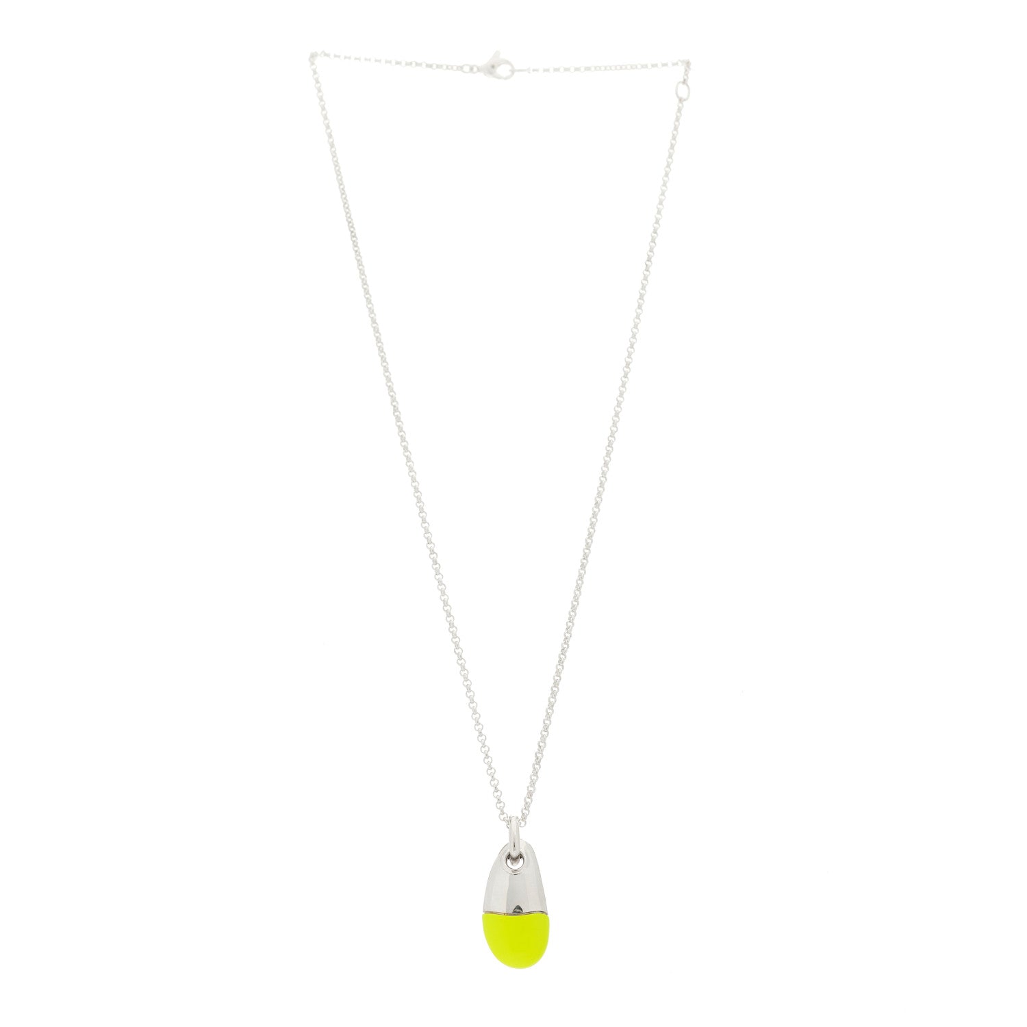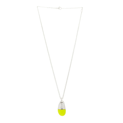 Sterling Silver Enamel Diamond Pebble Pendant Necklace Yellow