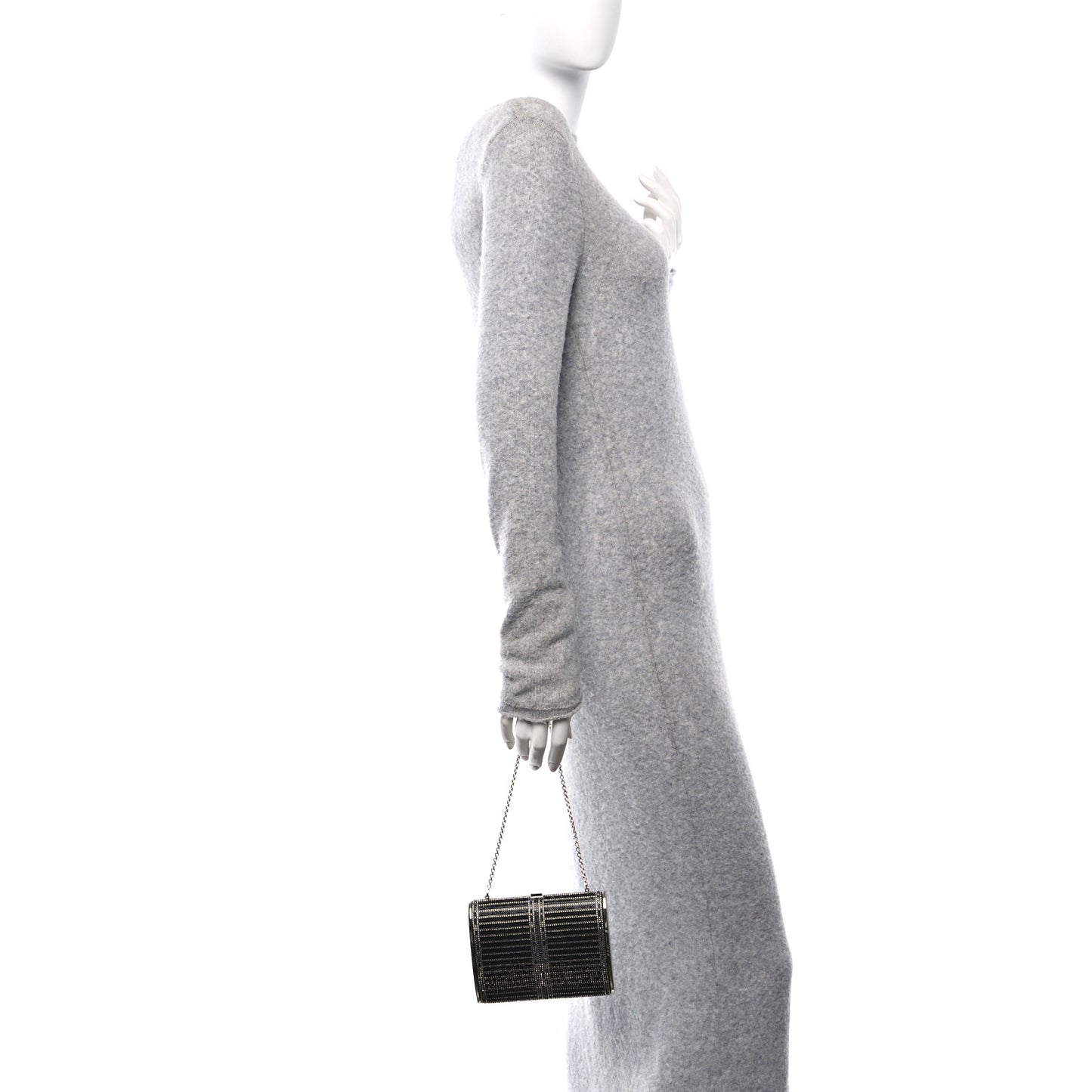 This is an authentic JUDITH LEIBER Swarovski Crystal Minaudiere Clutch in Black. This stunning evening clutch is entirely encrusted in black crystals. The bag features a silver chain strap and a push-lock that opens to a silver leather interior.Follow this item for alerts. Judith Leiber is a registered trademark of Judith Leiber. FASHIONPHILE is not affiliated with Judith Leiber.
