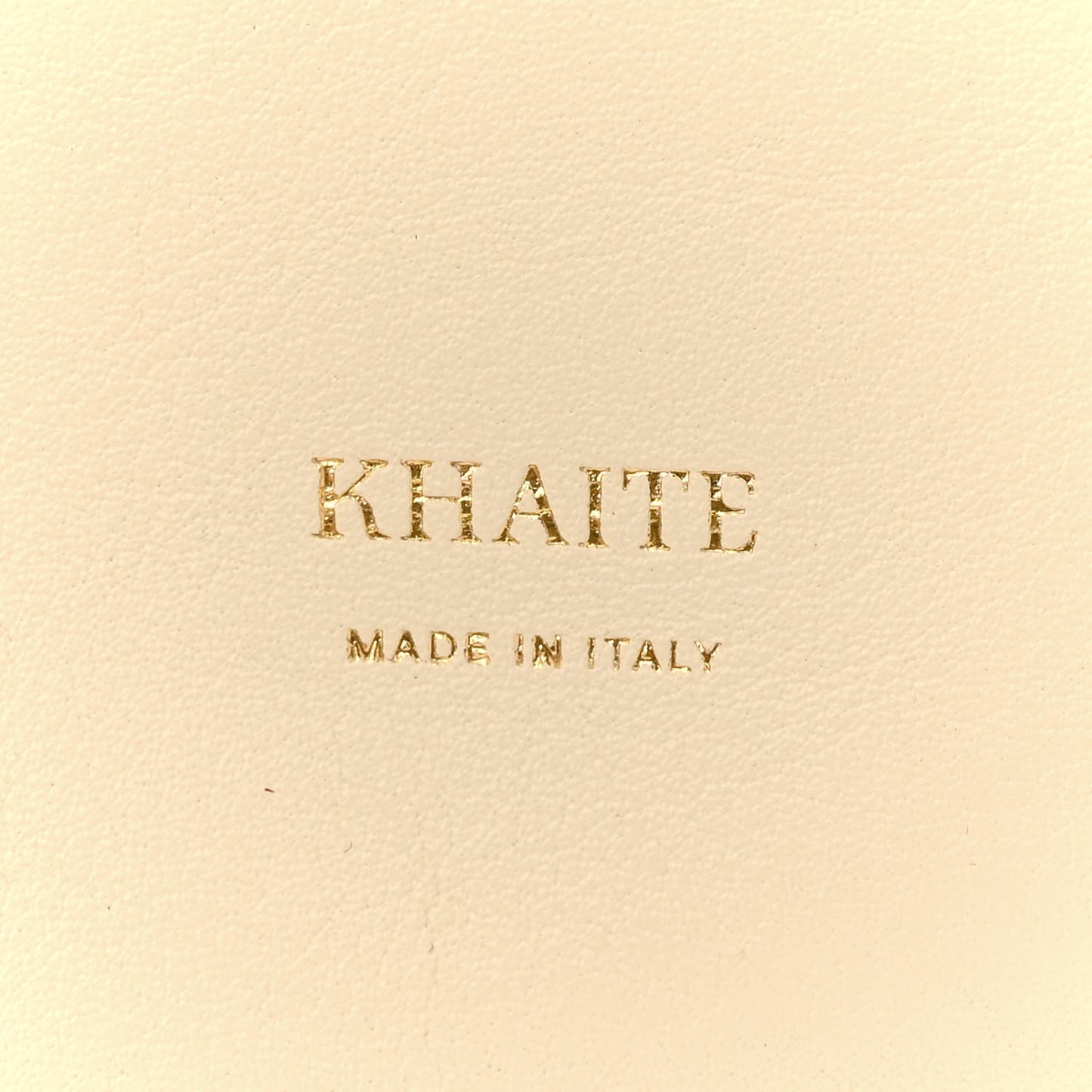 This is an authentic KHAITE Calfskin Banded Florence Tote in Cream. This tote bag is crafted of calfskin leather in cream. The bag features leather top handles. The top opens to a black fabric interior and features a matching removable leather pouch.Follow this item for alerts. Khaite is a registered trademark of Khaite. FASHIONPHILE is not affiliated with Khaite.