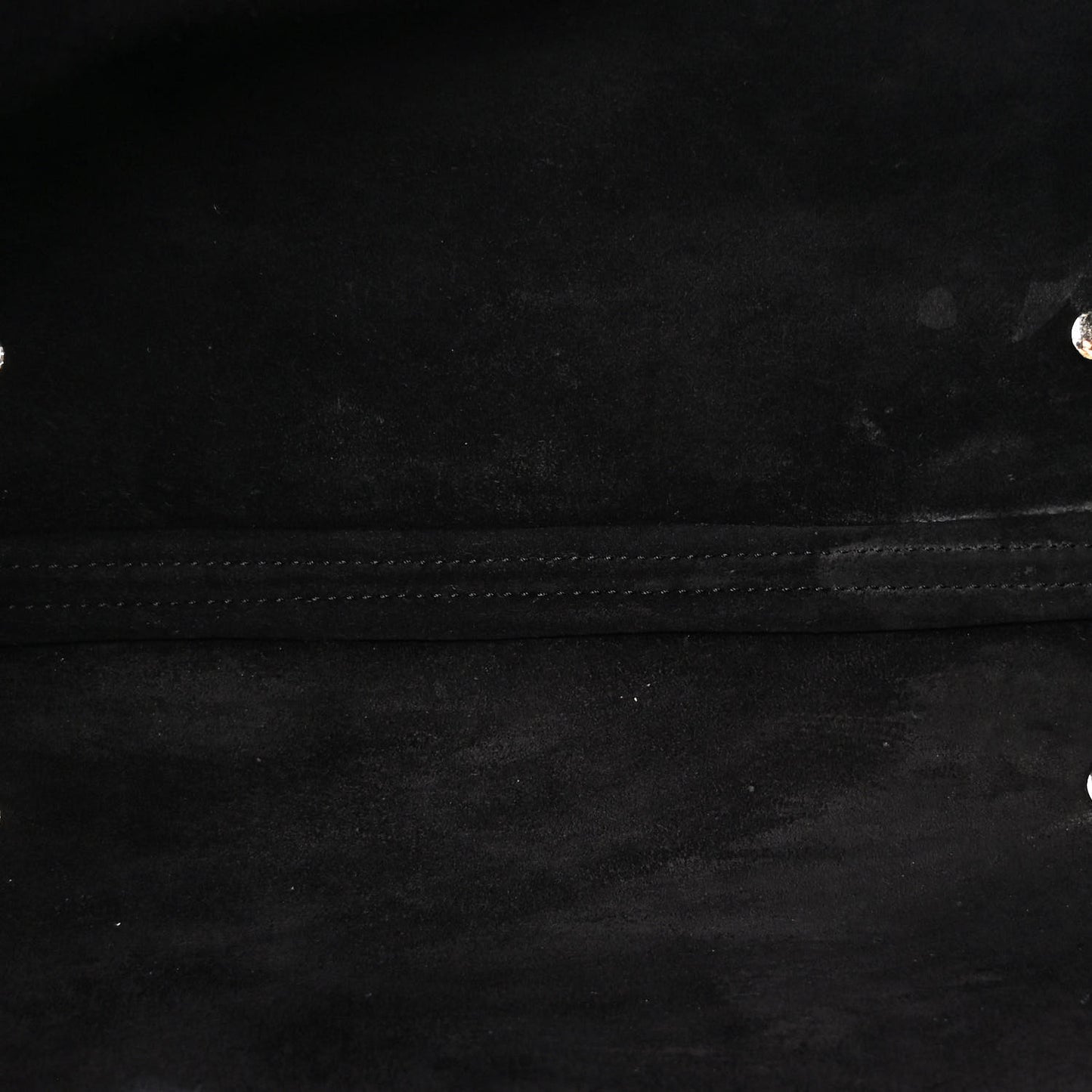 Grained Calfskin Logo Small Fringe Shopper Tote Black