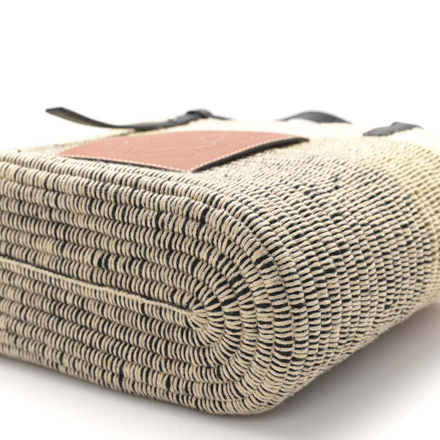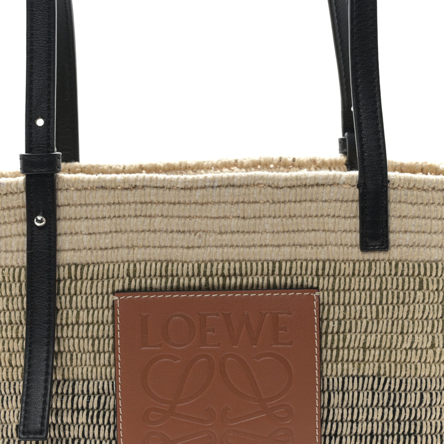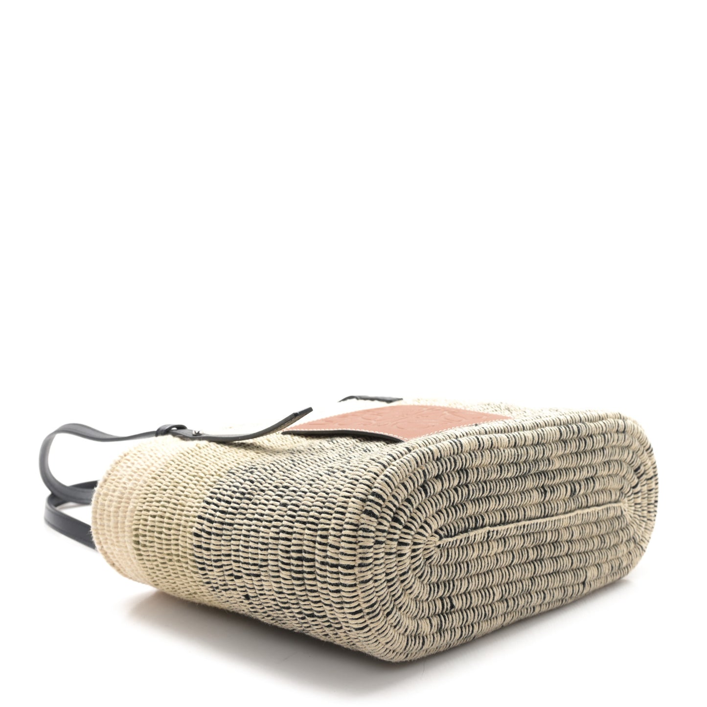 This is an authentic LOEWE Raffia Square Small Basket Tote Bag in Ombre and Black. This chic and lovely tote is crafted of woven raffia in beige to black ombre with tall adjustable black leather strap handles and a front patch with an embossed logo. The open top leads to matching tweed interior.Follow this item for alerts. Loewe is a registered trademark of Loewe. FASHIONPHILE is not affiliated with Loewe.