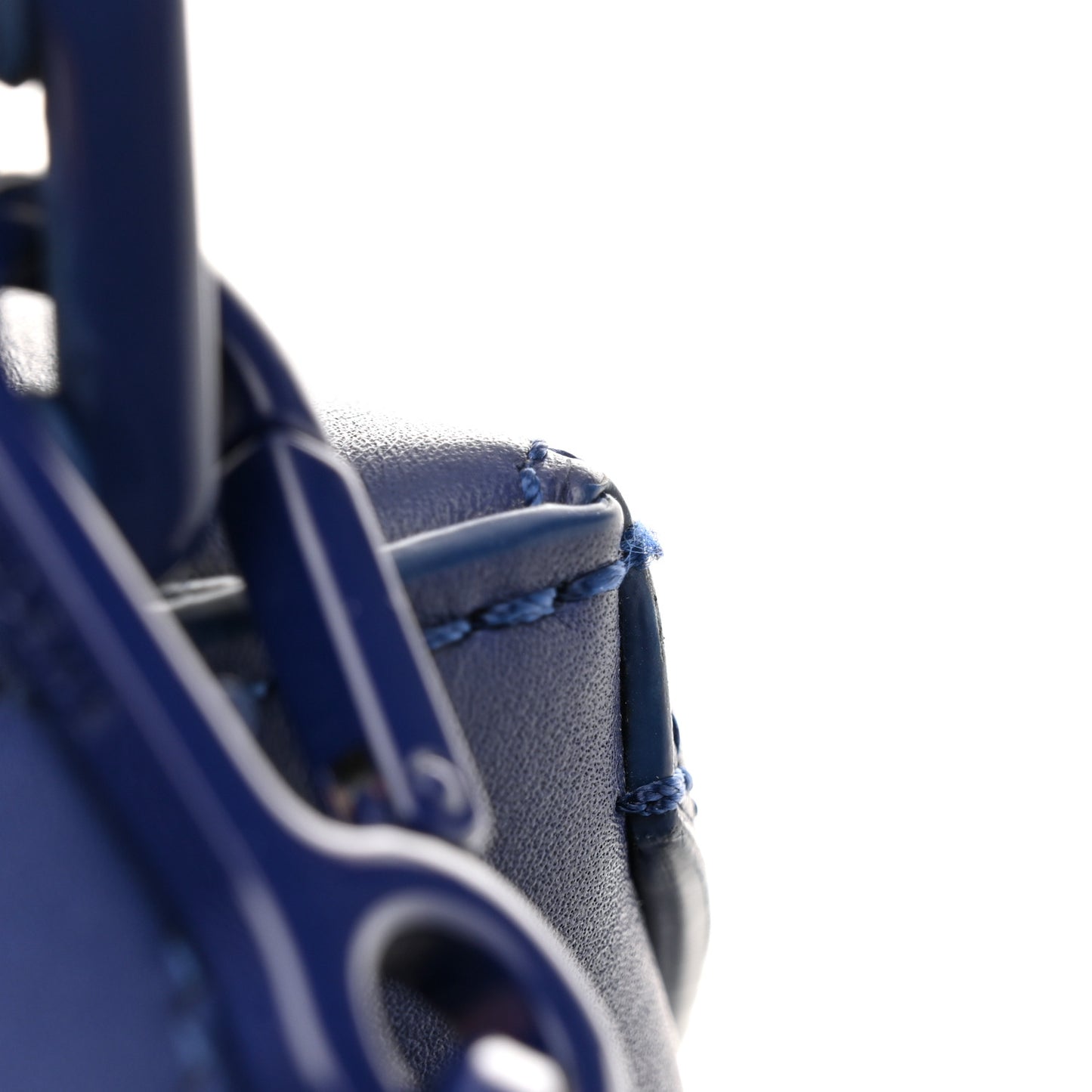 This is an authentic LOEWE Satin Calfskin Monochrome Small Puzzle Edge Bag in Navy. This chic bag is crafted of calfskin leather in navy blue. It features a rolled leather top handle, a removable adjustable logo canvas shoulder strap, and enamel blue hardware. The top zipper opens to a blue fabric interior with a patch pocket.Follow this item for alerts. Loewe is a registered trademark of Loewe. FASHIONPHILE is not affiliated with Loewe.