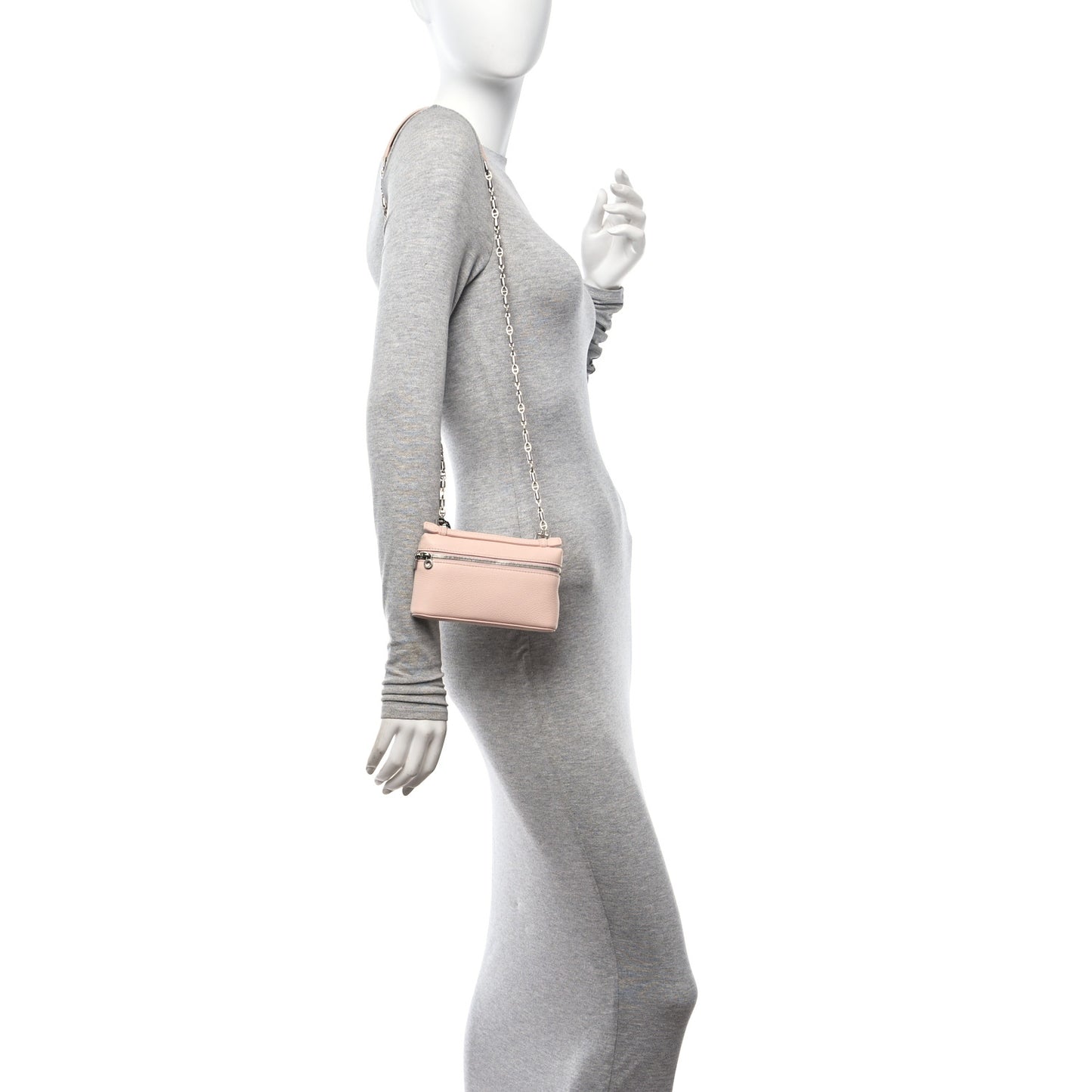 This is an authentic LORO PIANA Grained Calfskin Extra Pocket Mini Pouch in Candoglia Marble. This chic pouch is crafted of grained calfskin leather in light pink. The bag features a leather strap top handle, an optional chain shoulder strap, and silver hardware. The wrap around zipper opens to a matching leather interior with a card slot.Follow this item for alerts. Loro Piana is a registered trademark of Loro Piana. FASHIONPHILE is not affiliated with Loro Piana.