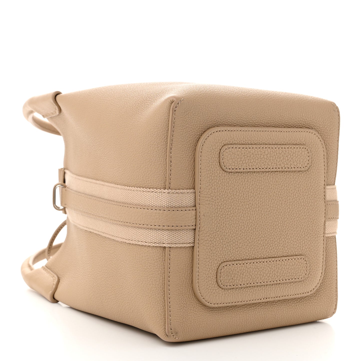 This is an authentic LORO PIANA Grained Calfskin Micro Bale Bag in Light Mastic. This bag is crafted of grained calfskin leather in beige. The bag features leather top handles, an optional shoulder strap, and silver hardware. The top secures with a metal chain and opens to a suede interior with a removable pouch.Follow this item for alerts. Loro Piana is a registered trademark of Loro Piana. FASHIONPHILE is not affiliated with Loro Piana.