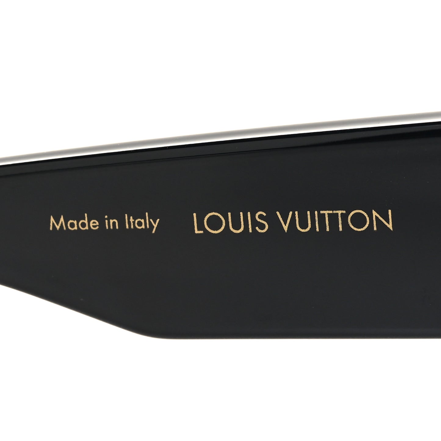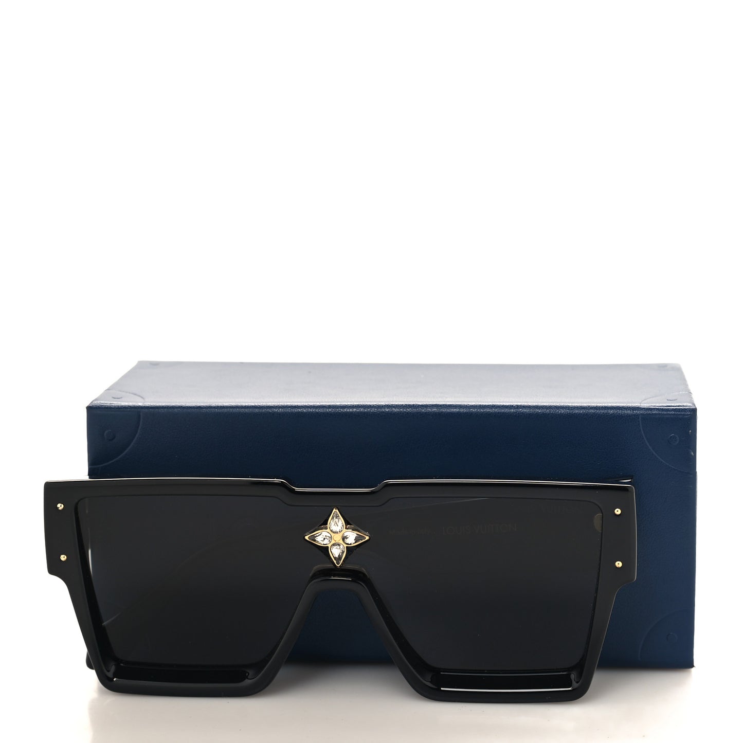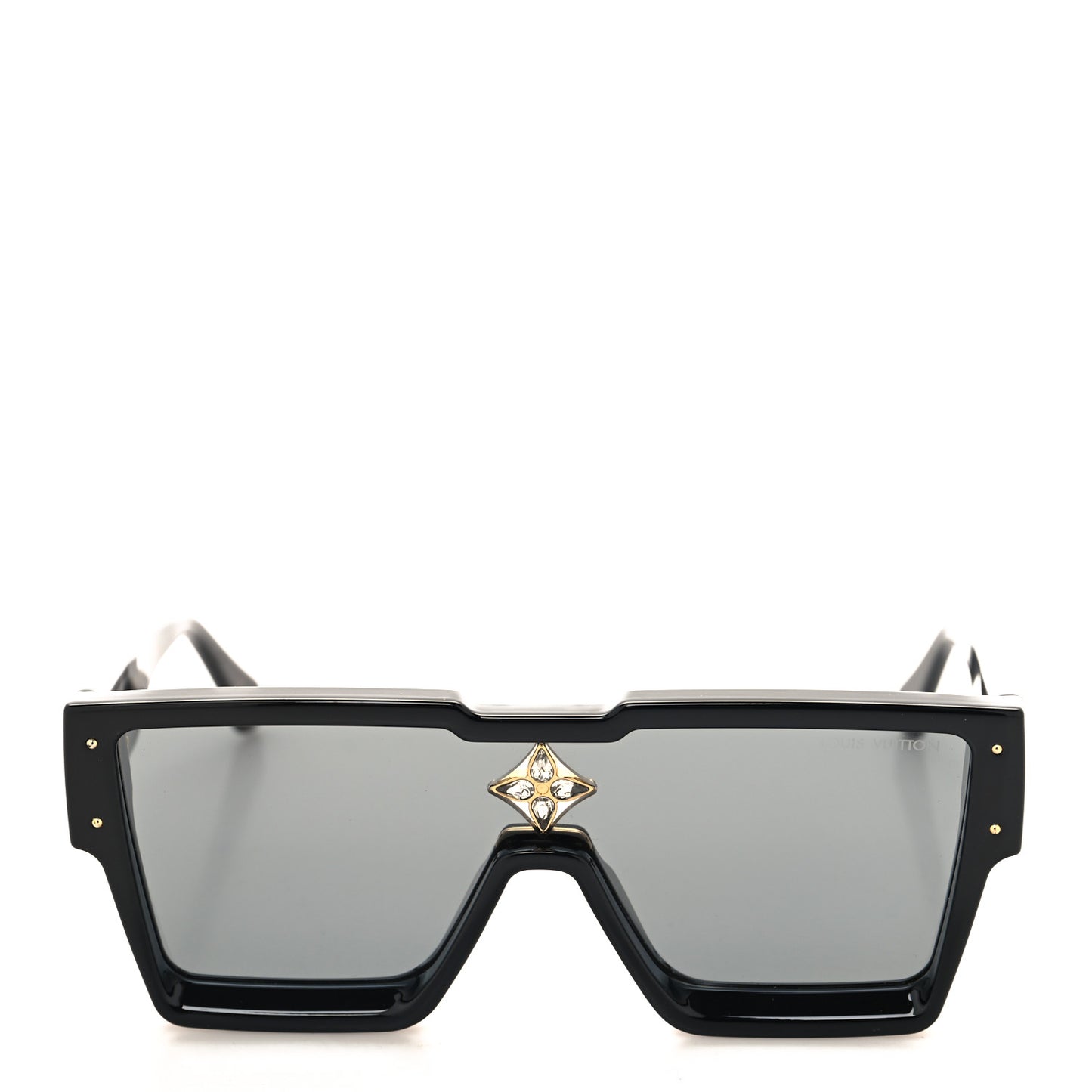 This is an authentic pair of LOUIS VUITTON Acetate Swarovski Crystal Cyclone Sunglasses Z1578E in Black. These bold sunglasses feature an exaggerated frame with angular lines and a deep beveled front. It features dark grey lenses, gold-tone hardware, and 4 Swarovski crystals on the front.Follow this item for alerts. Louis Vuitton is a registered trademark of Louis Vuitton. FASHIONPHILE is not affiliated with Louis Vuitton.