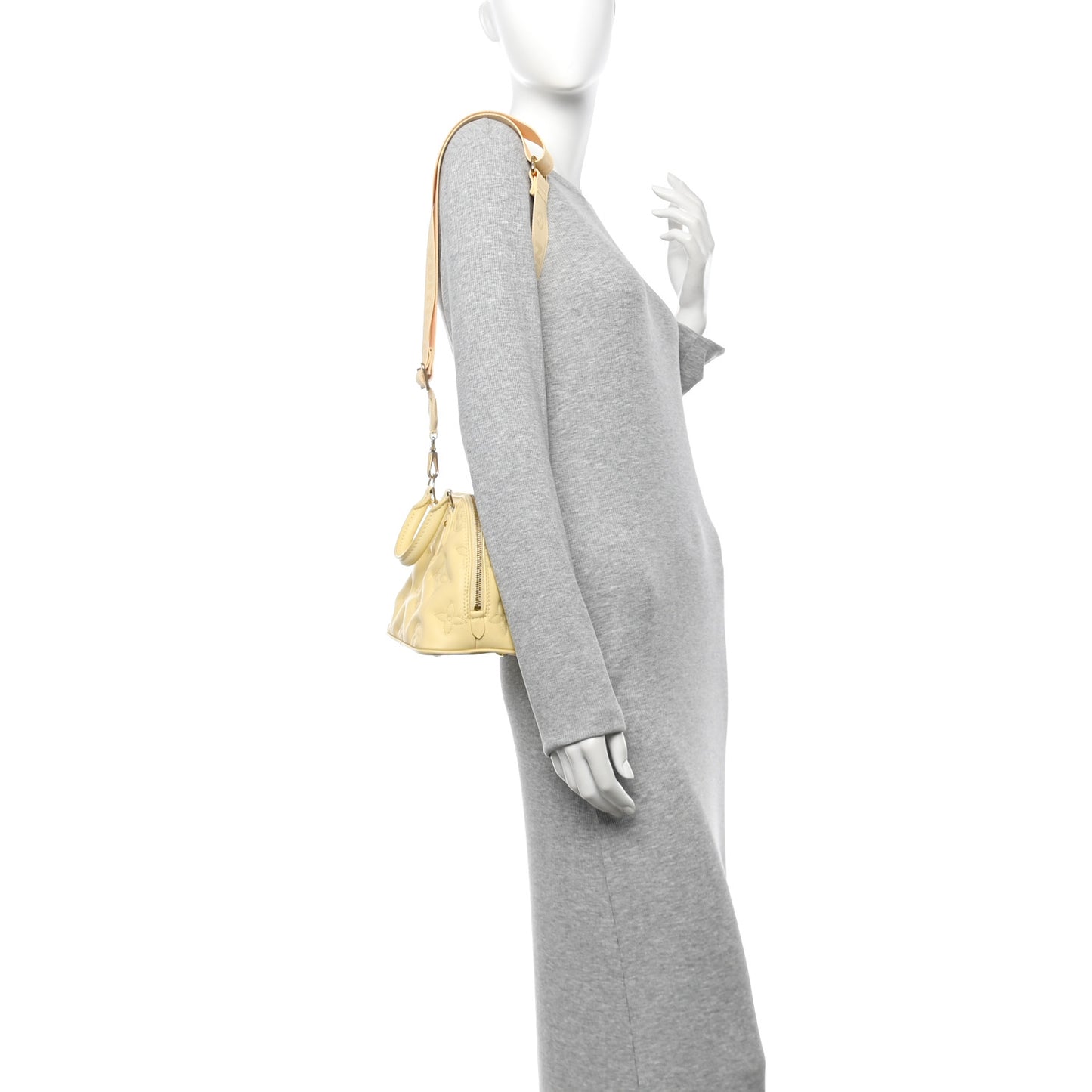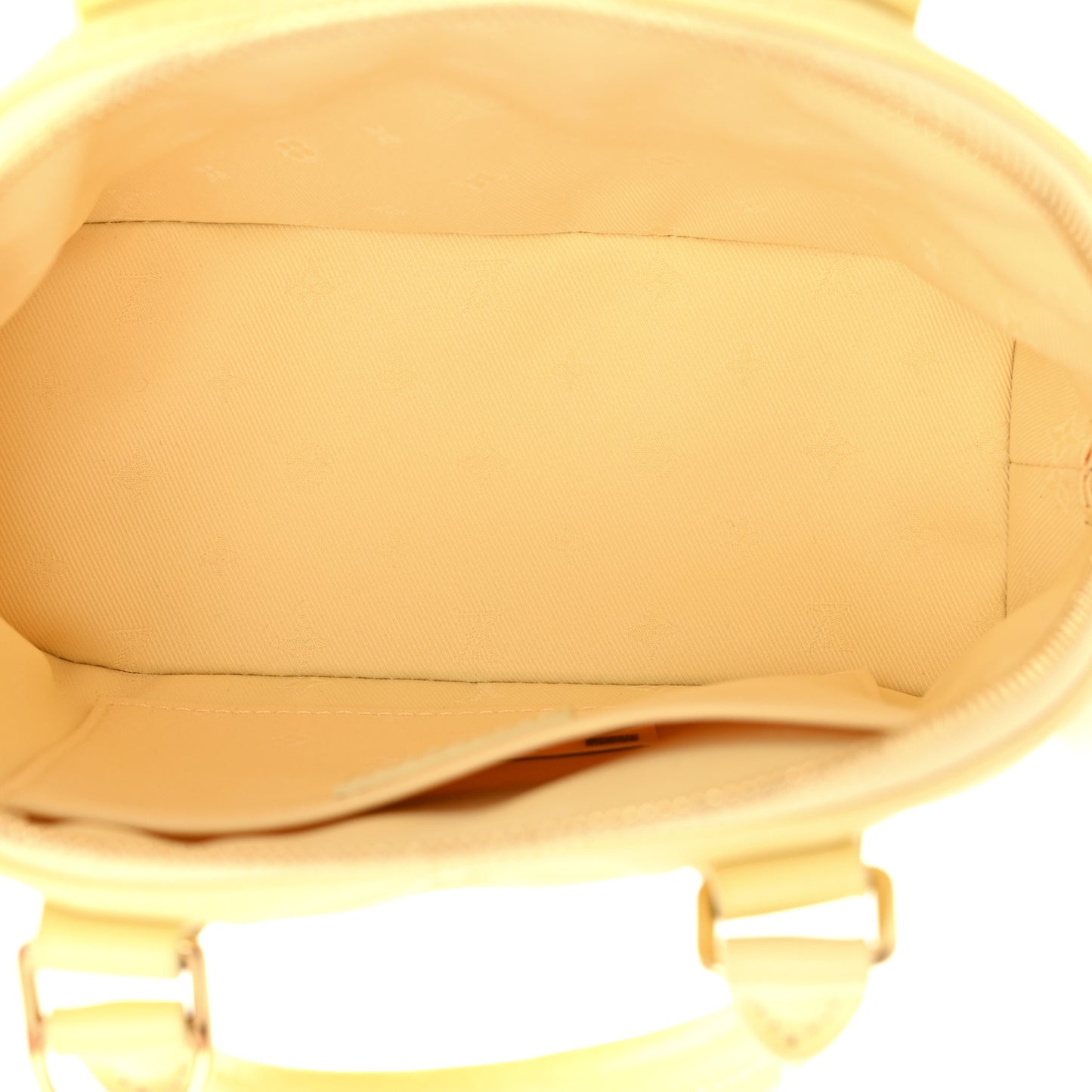 This is an authentic LOUIS VUITTON Calfskin Bubblegram Alma BB in Banana. This stylish handbag is crafted of puffy calfskin leather in light yellow with Louis Vuitton monogramming embroidered throughout. It features rolled leather top handles and a removable adjustable yellow fabric shoulder strap. The top zippers open to a monogram yellow fabric interior with a patch pocket.Follow this item for alerts. Louis Vuitton is a registered trademark of Louis Vuitton. FASHIONPHILE is not affiliated with Louis Vuitton.