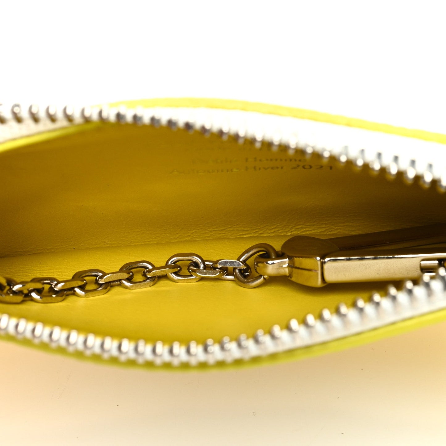 This is an authentic LOUIS VUITTON Calfskin Everyday LV Key Pouch in Jaune. This card holder is made of yellow calfskin leather with a retro inspired Louis Vuitton logo in white across the front. The silver top zipper opens to a matching yellow cross-grain leather interior with an attached silver carabiner to hook to your keys or handbag.Follow this item for alerts. Louis Vuitton is a registered trademark of Louis Vuitton. FASHIONPHILE is not affiliated with Louis Vuitton.