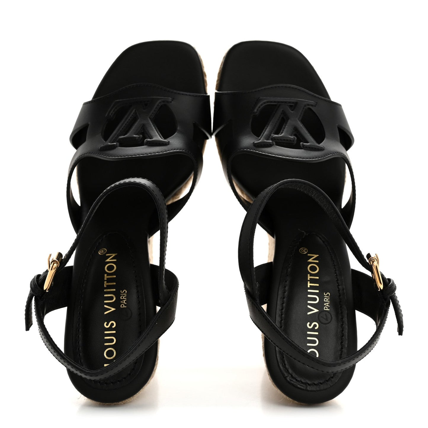 Calfskin LV Isola Espadrille Wedge Sandals 39 Black