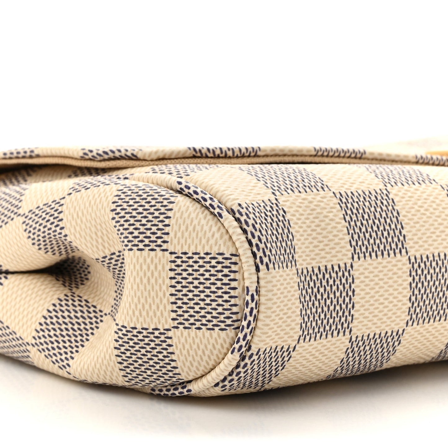 This is an authentic LOUIS VUITTON Damier Azur Favorite MM. This stylish shoulder bag is crafted of Louis Vuitton damier checked coated canvas in blue and white. The shoulder bag features a gold chain strap, an optional vachetta leather shoulder strap, damier piping, and a front flap trimmed with a Louis Vuitton logo plate in polished gold. The flap opens to a beige canvas fabric lining with a flat pocket.Follow this item for alerts. Louis Vuitton is a registered trademark of Louis Vuitton. FASHIONPHILE is not affiliated with Louis Vuitton.