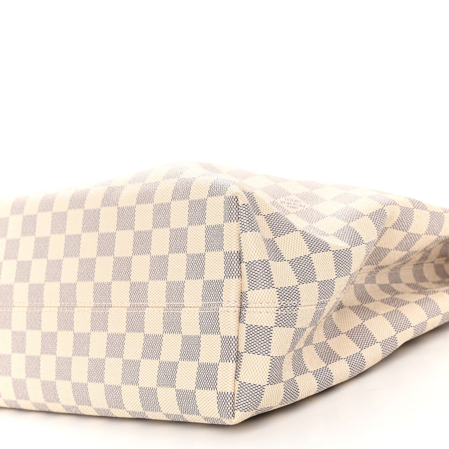 This is an authentic LOUIS VUITTON Damier Azur Graceful MM in Rose Ballerine. This stylish shoulder bag is finely crafted of Louis Vuitton's signature checkerboard coated canvas in blue and white. The bag features a flat vachetta leather shoulder strap with polished brass hardware and a magnetic closure. This opens the bag to a spacious light pink fabric interior with a zipper pocket.Follow this item for alerts. Louis Vuitton is a registered trademark of Louis Vuitton. FASHIONPHILE is not affiliated with Louis Vuitton.