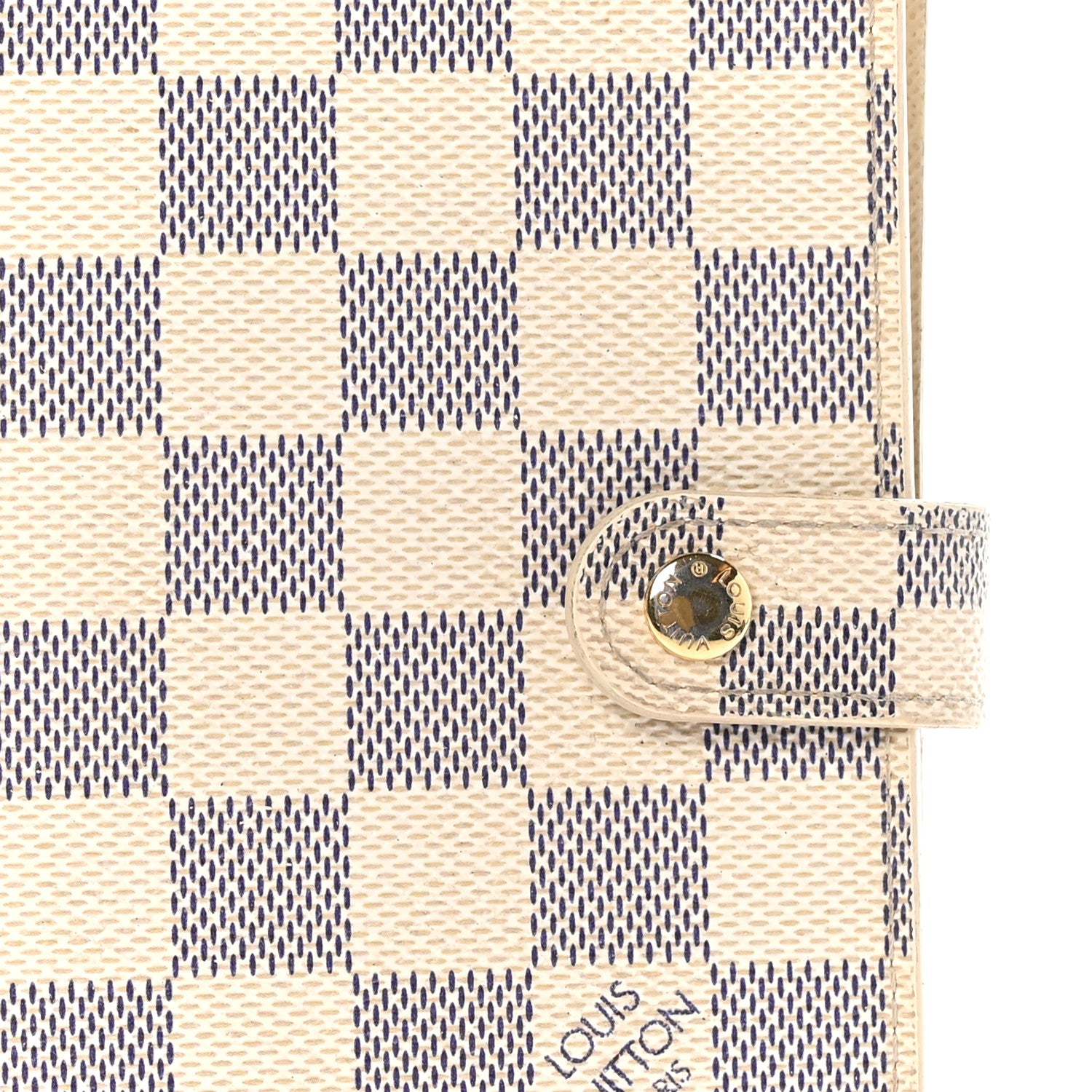 This is an authentic LOUIS VUITTON Damier Azur Small Ring Agenda Cover. This stylish agenda is finely crafted of blue and ivory Louis Vuitton signature checkerboard coated canvas. The agenda has a crossover strap that unsnaps to an ivory cross-grain leather interior with card slots, patch pockets, pen loop and gold rings for inserts.Follow this item for alerts. Louis Vuitton is a registered trademark of Louis Vuitton. FASHIONPHILE is not affiliated with Louis Vuitton.