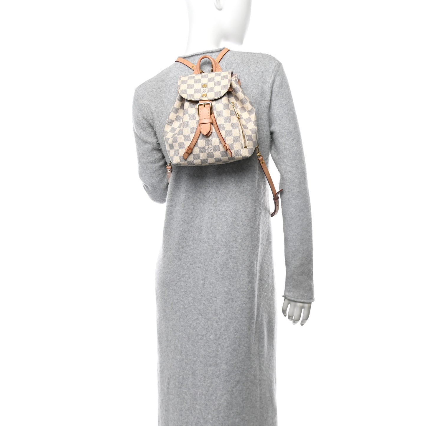 This is an authentic LOUIS VUITTON Damier Azur Sperone BB Backpack. This stylish backpack is crafted of signature Louis Vuitton Damier canvas in blue and white. The backpack features adjustable natural vachetta cowhide leather shoulder straps, top handle, and cinch-cord. The bag also features polished brass hardware, an exterior zip pocket, and a crossover flap with a belt closure. The top opens to a light pink microfiber interior with a patch pocket and a D-ring.Follow this item for alerts. Louis Vuitton is a registered trademark of Louis Vuitton. FASHIONPHILE is not affiliated with Louis Vuitton.
