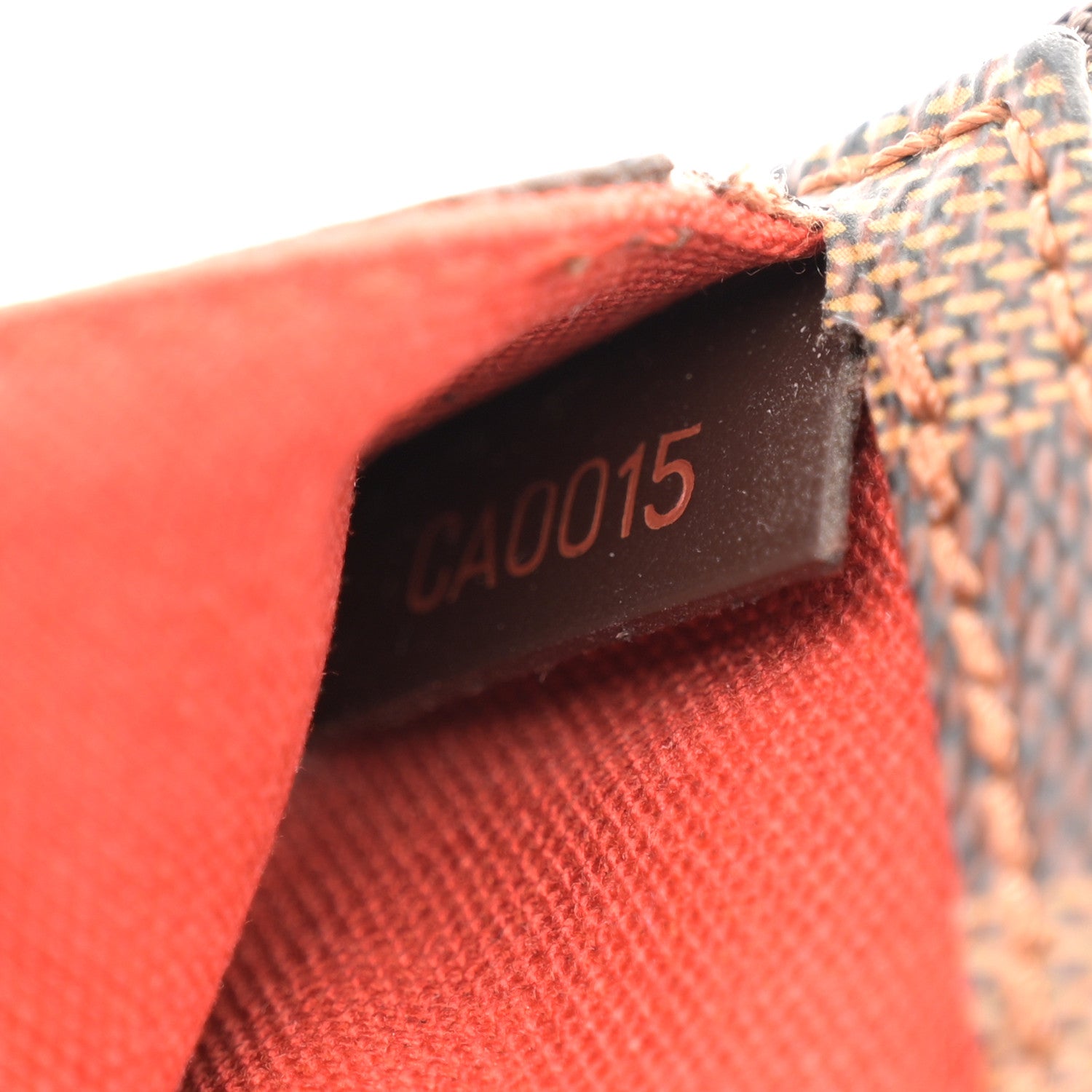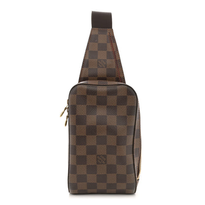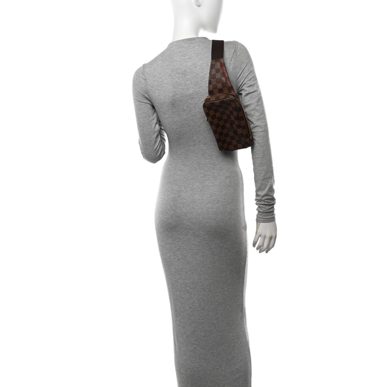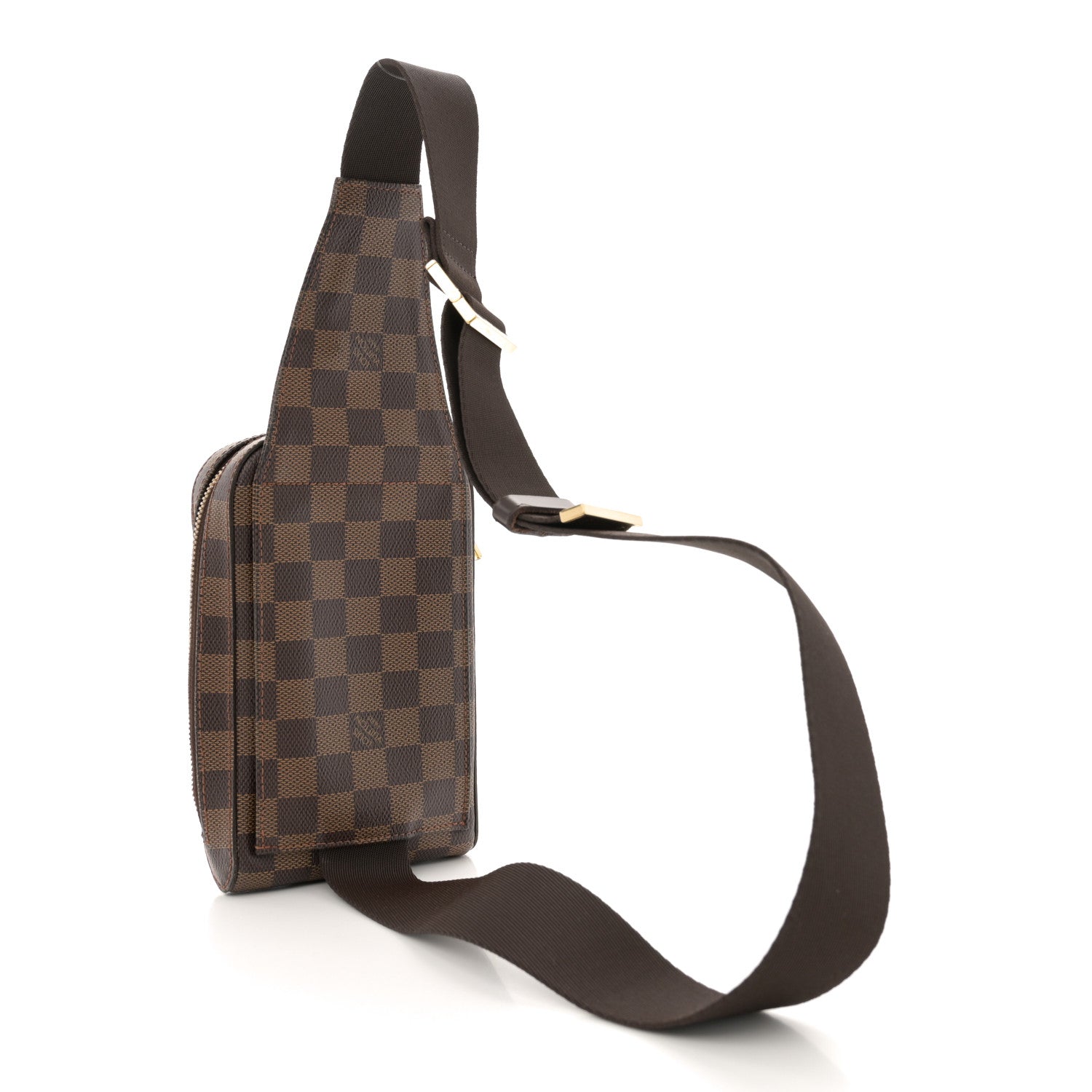 This is an authentic LOUIS VUITTON Damier Ebene Geronimos. This bag is crafted of ebene damier coated canvas and features a flat pocket on the back and a concealed snap pocket found at the canvas portion of the adjustable strap. The brass wrap-around zipper opens to an orange fabric interior.Follow this item for alerts. Louis Vuitton is a registered trademark of Louis Vuitton. FASHIONPHILE is not affiliated with Louis Vuitton.