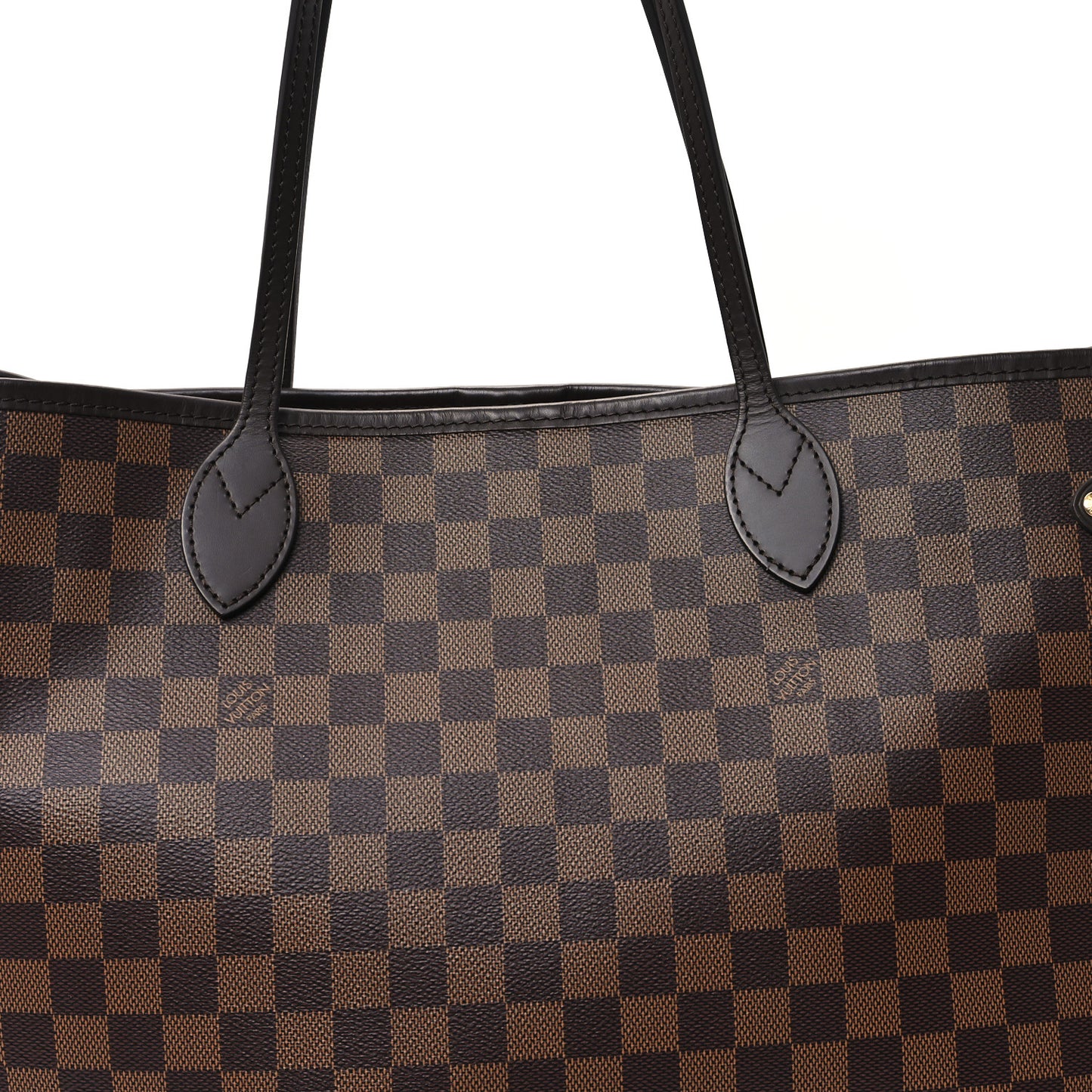 This is an authentic LOUIS VUITTON Damier Ebene Neo Neverfull GM. This classic tote is crafted of Louis Vuitton's checkerboard canvas, dark brown trim and shoulder straps, with gold-toned hardware. The top opens to a red striped fabric interior with a hanging zipper pocket.Follow this item for alerts. Louis Vuitton is a registered trademark of Louis Vuitton. FASHIONPHILE is not affiliated with Louis Vuitton.