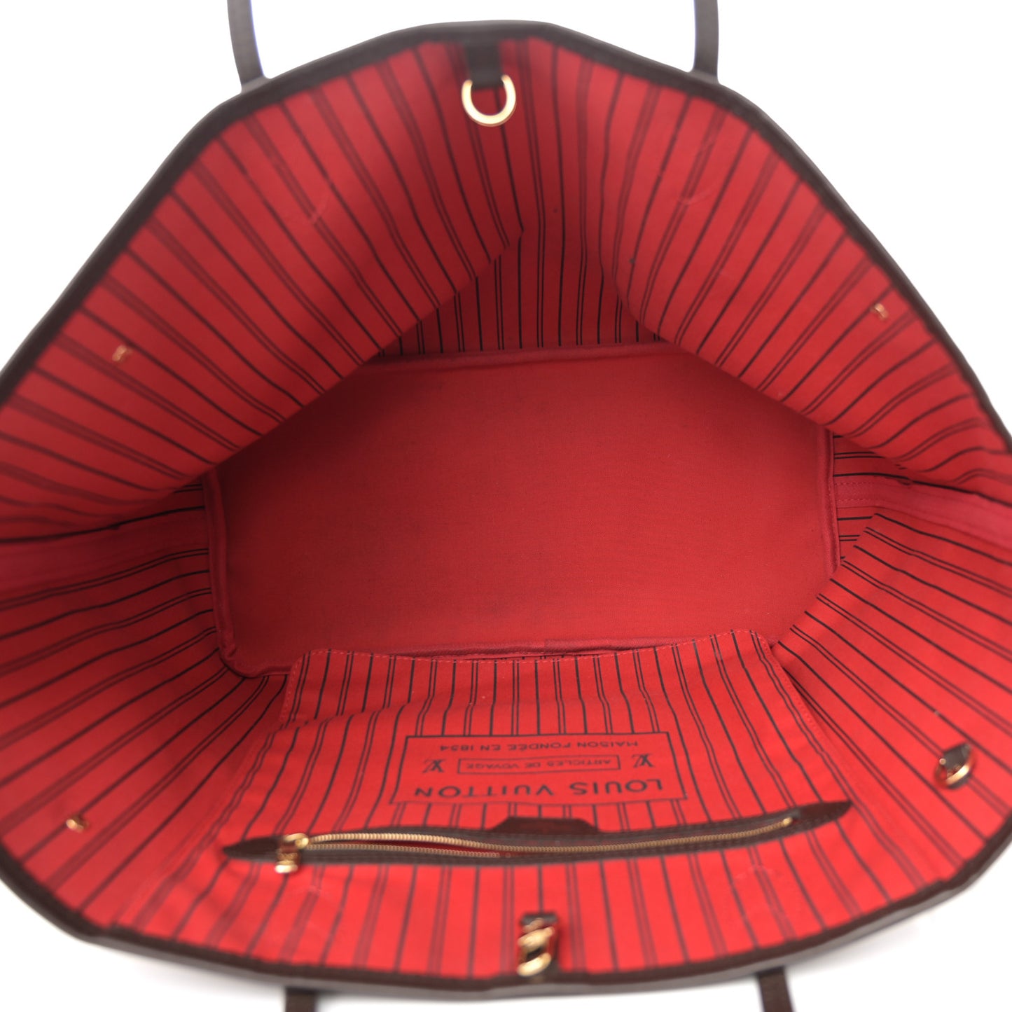 This is an authentic LOUIS VUITTON Damier Ebene Neo Neverfull GM. This chic handbag is crafted of classic Louis Vuitton Damier canvas with dark brown cowhide leather shoulder straps, trim, and side cinch cords with polished gold hardware. The top is open to an interior of rouge red striped fabric with a hanging zipper pocket.Follow this item for alerts. Louis Vuitton is a registered trademark of Louis Vuitton. FASHIONPHILE is not affiliated with Louis Vuitton.