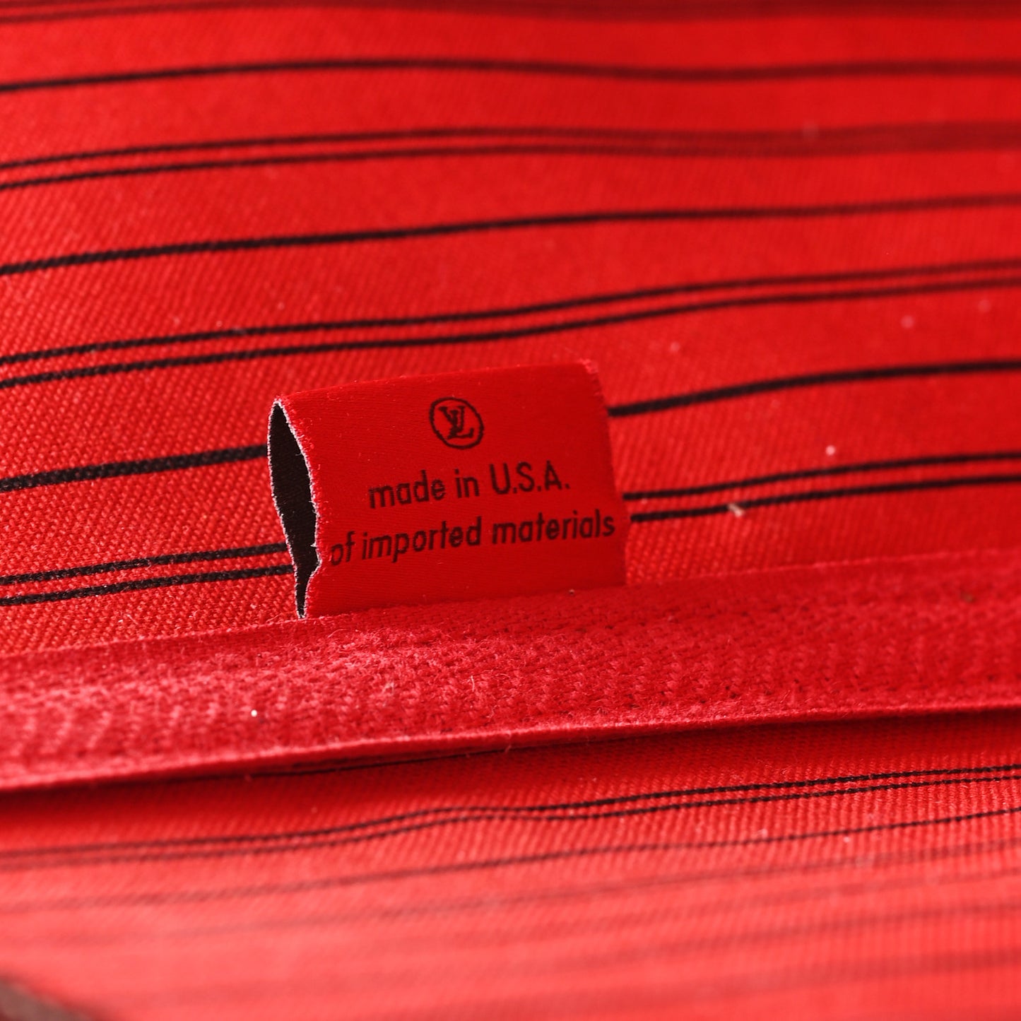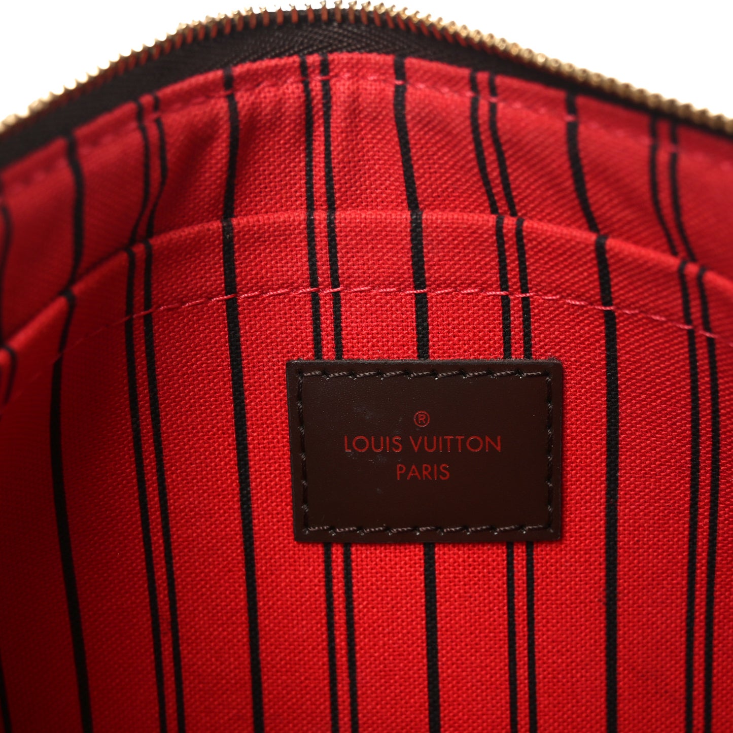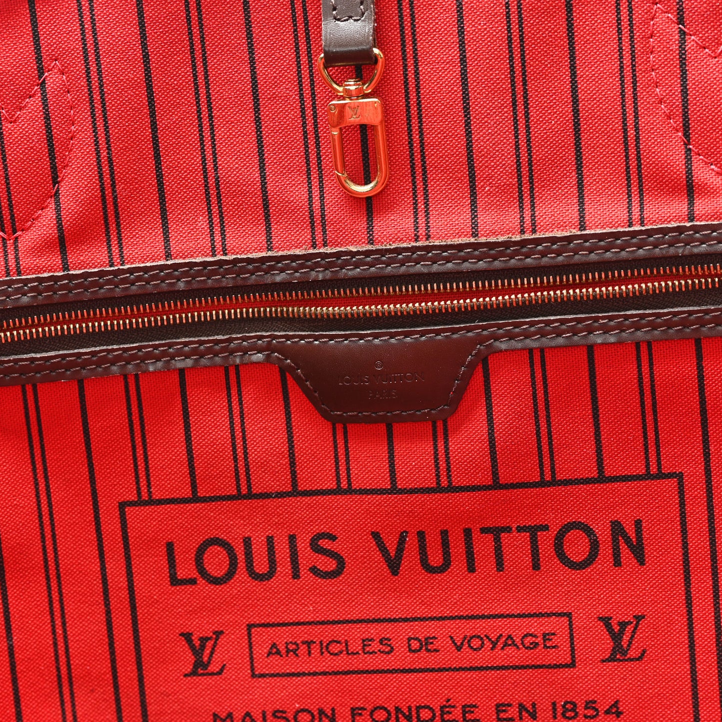 This is an authentic LOUIS VUITTON Damier Ebene Neo Neverfull GM. This chic tote is crafted of classic Louis Vuitton Damier in brown on coated canvas. The shoulder bag features chocolate brown cowhide leather trim, shoulder straps, side cinch cords, and has polished brass hardware. The top is open to a striped red fabric interior with a hanging zipper pocket and matching pochette.Follow this item for alerts. Louis Vuitton is a registered trademark of Louis Vuitton. FASHIONPHILE is not affiliated with Louis Vuitton.