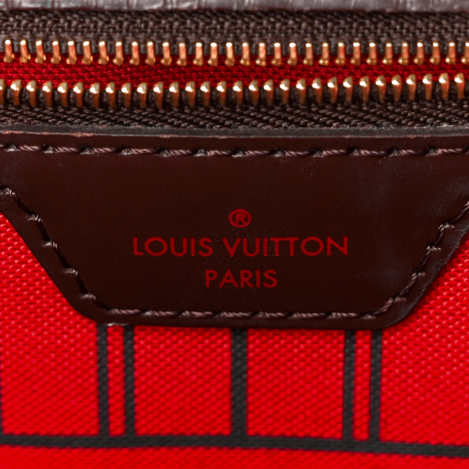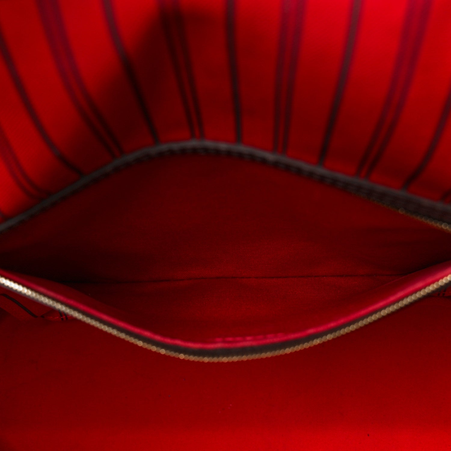 This is an authentic LOUIS VUITTON Damier Ebene Neo Neverfull MM. This chic tote bag is crafted of classic Louis Vuitton Damier checkerboard canvas with dark brown cowhide leather shoulder straps and trim. The top is open to an interior of rouge red striped fabric with a hanging zipper pocket and a matching removable pochette.Follow this item for alerts. Louis Vuitton is a registered trademark of Louis Vuitton. FASHIONPHILE is not affiliated with Louis Vuitton.