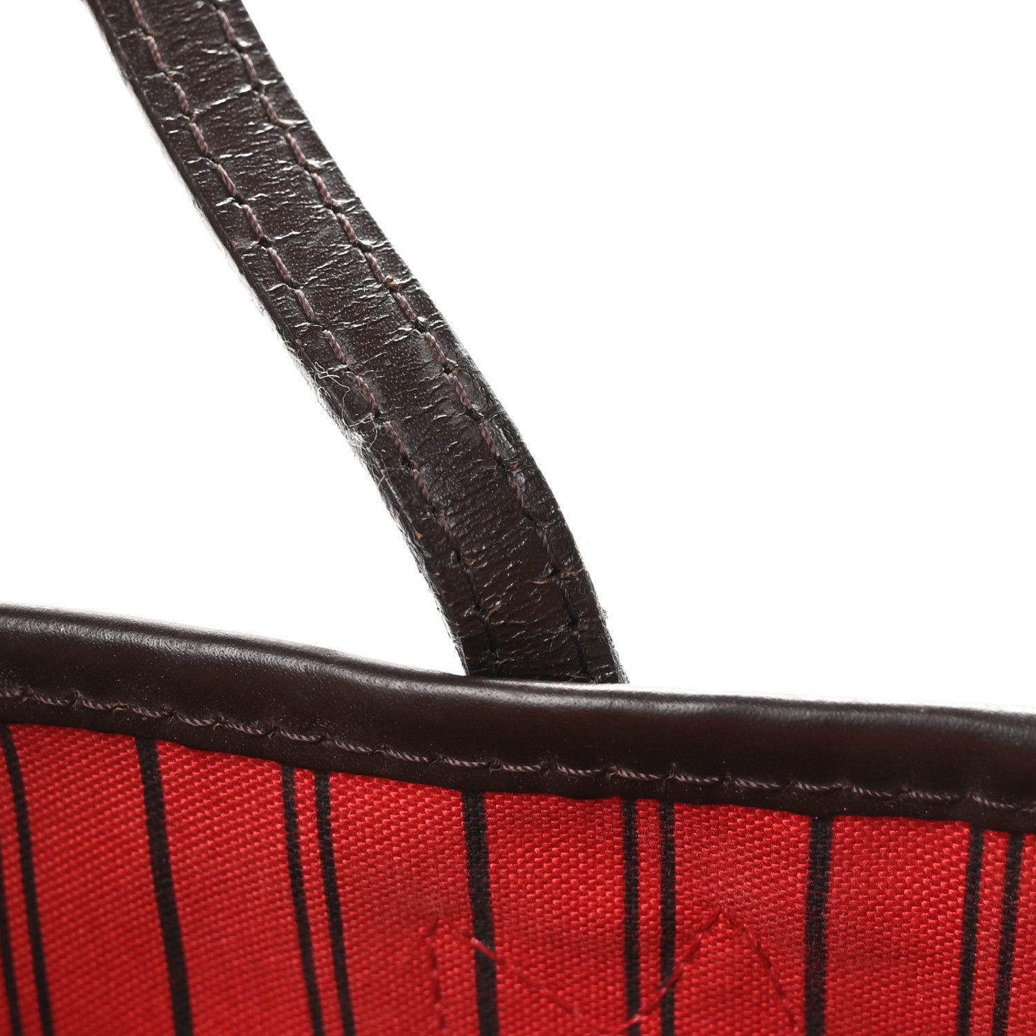 This is an authentic LOUIS VUITTON Damier Ebene Neo Neverfull MM. This chic tote is crafted of classic Louis Vuitton checkerboard coated canvas in brown. The bag features chocolate brown cowhide leather trim, leather shoulder straps, and side cinch cords with polished brass hardware. The top is open to a striped red fabric interior with a hanging zipper pocket and d-ring.Follow this item for alerts. Louis Vuitton is a registered trademark of Louis Vuitton. FASHIONPHILE is not affiliated with Louis Vuitton.
